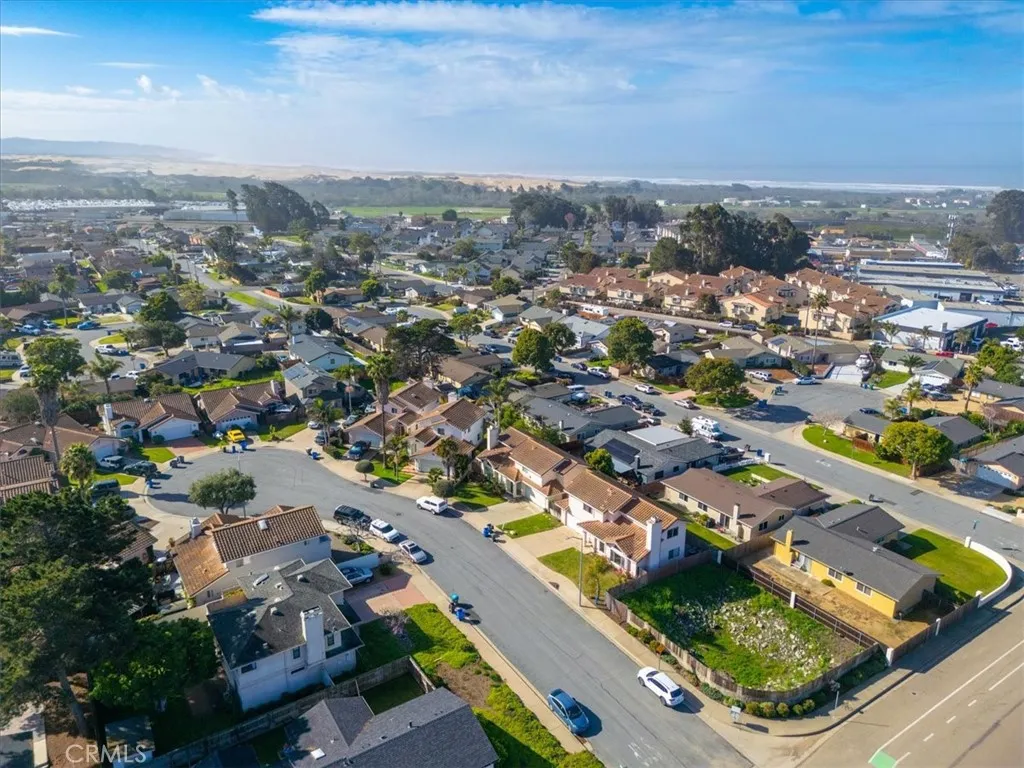 Welcome to your dream coastal retreat nestled in between the sun-kissed shores of Oceano Beach and Grover Beach. This captivating 2-story residence boasts timeless elegance and modern comfort, situated in a tranquil cul-de-sac setting. As you step inside, you're greeted by the warm embrace of vinyl plank flooring that gracefully guides you through the common areas. The expansive living room features vaulted ceilings, exuding an airy ambiance, while a cozy fireplace invites you to unwind after a day of coastal adventures. Entertain with ease in the open-concept floor plan, seamlessly connecting the living, dining, and kitchen areas. Throughout the home you will find an abundance of storage. The large primary suite offers a spacious walk-in closet and en-suite bathroom. Venture outdoors to charming deck patio areas, ideal for al fresco dining and basking in the coastal breeze. Meanwhile, the front yard lawn sets a picturesque scene, welcoming you home with its inviting curb appeal. Conveniently located just 1.4 miles from the beach, this coastal gem offers the perfect blend of city and coastal living.