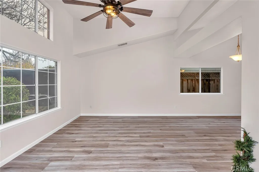 Nestled at 744 Bluff Drive, this attractive and updated property is situated in one of the most desirable areas of Los Banos. From the moment you arrive, you'll appreciate the care and attention that has been lavished upon this home. Newly added features include: vinyl plank waterproof flooring throughout, interior paint, ceiling fans, light fixtures, all sink and faucets, dishwasher and water heater. The living room and separate family room serves as central gathering spaces, featuring a double sided fireplace that promises cozy evenings and a warm ambience. The high and vaulted ceiling enhances the sense of spaciousness, while the built-in shelves offer both practical storage and display space for treasured belongings. In the kitchen, you will find a culinary haven. Imagine preparing meals on the beautiful new quartz countertops, framed by the shaker cabinets and stylish new tile backsplash, with the kitchen peninsula providing additional workspace and a casual dining option. There's a formal dining room with a gorgeous light fixture situated right off the kitchen area. The guest bathroom is designed for convenience, offering a double new quartz top vanity that provides ample space, alongside a new tub/shower combo. The primary bedroom provides a private retreat, complete with the added convenience of it's own primary bathroom with new quartz countertops and walk in shower. Additional features include a laundry room for ease of chores, a fenced backyard for secure outdoor enjoyment, a patio for relaxing, and a shed for extra storage. Right behind the property is the Los B