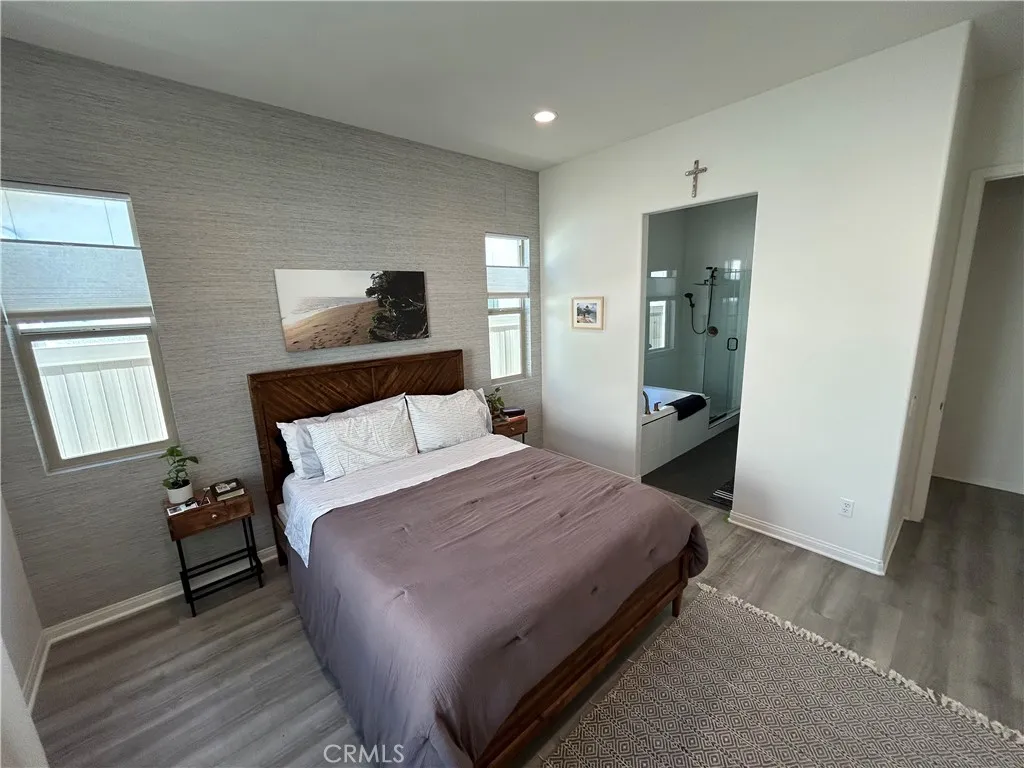 Beautifully upgraded single-story home featuring 4 bedrooms, 3 bathrooms, and a private office, offering exceptional flexibility of use. Built in 2020 with first occupancy in 2021, this thoughtfully designed home showcases an open-concept layout with 10-foot ceilings, recessed lighting, and luxury vinyl plank flooring throughout. Bedrooms, great room, and patio are pre-wired for ceiling fans. The spacious kitchen features granite countertops, soft-close cabinetry and drawers, premium appliances, dual GE ovens with SmartHQ app control, a large island with breakfast seating, and abundant storage. Bathrooms offer matching stone counters, soft-close cabinetry, and floor-to-ceiling tile in shower and tub surrounds for a clean, modern finish. Ethernet wiring throughout provides fast, reliable wired internetideal for remote work, streaming, and smart-home needs. Additional highlights include a generous laundry room with utility sink, tankless water heater, leased solar system, whole-house water filtration with reverse osmosis, and smart-home features for garage and exterior lighting. The finished garage features upgraded epoxy flooring and a 220-volt outlet. Enjoy a low-maintenance backyard with concrete patio and vinyl fencing. Located in the desirable Harvest community across from a park with mountain views and resort-style amenities including pool, spa, fitness center, clubhouse, parks, sports fields, community garden, and dog park. Convenient to schools, shopping, and dining, with approximately a 20-minute drive to the beach. Unassuming from the front, this home opens to a lig