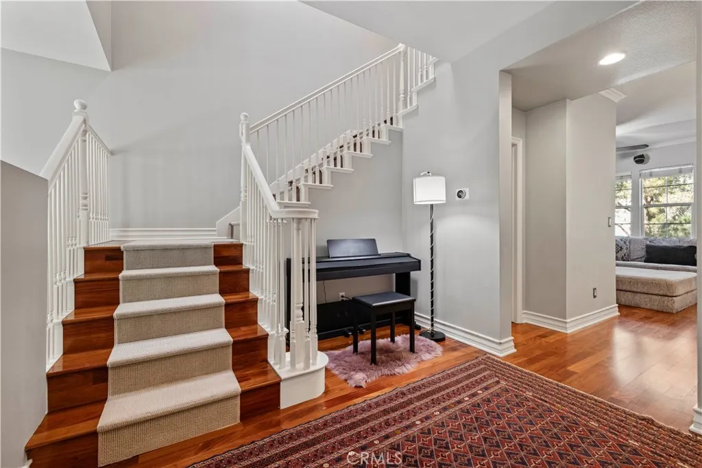 Welcome to Bridgeport, widely regarded as one of Santa Claritas most beautiful and sought-after communities, centered around a serene lake, scenic walking paths, and an abundance of wildlife that creates a true sense of escape, all while being just across the street from Bridgeport Marketplace, home to some of the areas best restaurants, coffee spots, and everyday conveniences. This thoughtfully designed townhouse offers a spacious, multi-level layout and has just been freshly painted, creating a bright, move-in-ready feel throughout. Upon entry, youre welcomed into the main living space featuring a cozy fireplace and inviting sitting area, perfect for both everyday living and entertaining. Downstairs, youll find a convenient indoor laundry room that leads directly to a large, attached two-car garage with two dedicated parking spaces and additional storage, a rare and highly desirable feature. The second level is the heart of the home, showcasing a beautifully remodeled kitchen with quartz countertops, newer appliances, and ample cabinetry, seamlessly opening to the cozy family room and formal dining area. A powder room on this level adds everyday convenience. Upstairs, the private sleeping quarters include two generously sized guest bedrooms, one with a large walk-in closet, along with a well-appointed guest bathroom with a tub and shower. The primary suite serves as a true retreat, offering a spa-like bathroom with a separate soaking tub and walk-in shower, as well as a custom built-in closet organizer. The home is located within the highly desirable Bridgeport school bou