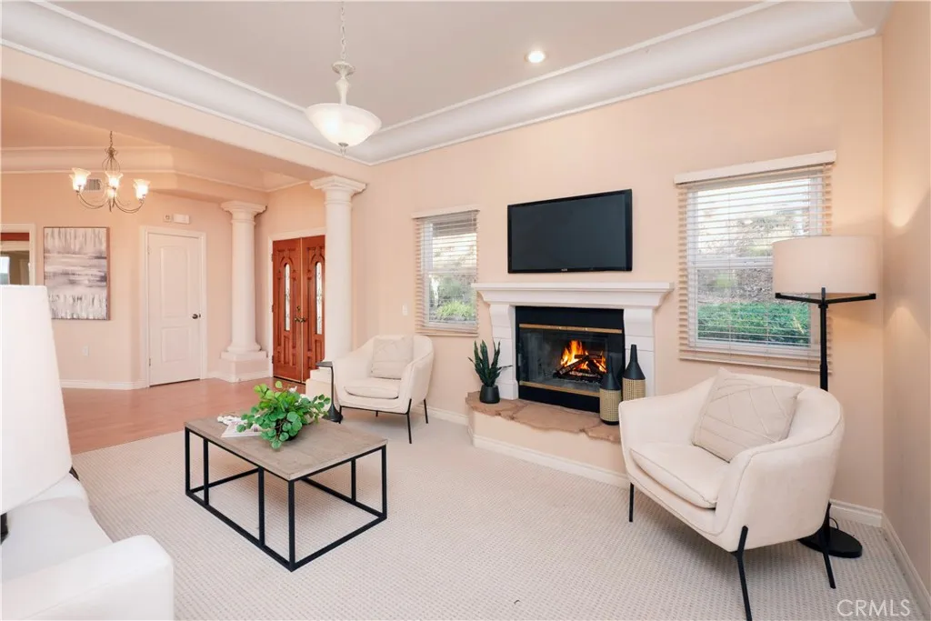 Welcome to your dream retreat situated on the scenic Santa Rosa Plateau in La Cresta. This stunning custom single-family residence sits on a sprawling 5 acre parcel, ensuring both privacy and tranquility while still enjoying the warmth of a close-knit community. Designed for comfortable, upscale living, this 3,317 sq ft home features an open floorplan, five spacious bedrooms, and three luxurious bathrooms perfect for families of any size or those who love to entertain. Step into sophistication and charm with elegant 12-inch crown molding, high ceilings, and rich hardwood flooring throughout. The heart of the home is the expansive family and dining rooms, seamlessly connected by a dual fireplace that creates an inviting atmosphere for gatherings. An additional fireplace in the living room adds warmth and ambiance to your evenings. The gourmet kitchen will delight the home chef with Corian countertops, a center service island with breakfast bar and ample space for culinary creativity. Whether youre preparing everyday meals or hosting festive celebrations, this kitchen is designed to inspire. Ideal for multi-generational living, the attached Next Generation unit provides comfort and independence. Complete with a full bathroom and a kitchenette, it is perfect for extended family or guests. Embrace the beautiful California outdoors from the expansive rear deck, offering breathtaking views of rolling hills and picturesque countryside. The primary suite features a private covered viewing deck, creating a personal sanctuary to enjoy sunrises, sunsets, and peaceful moments. The pro