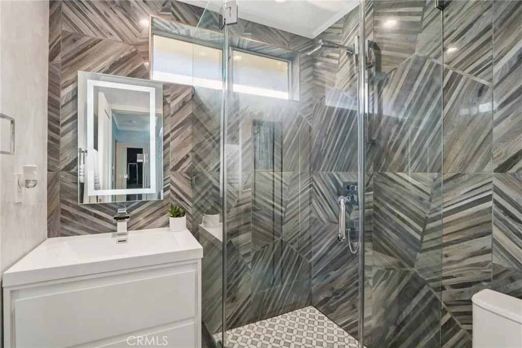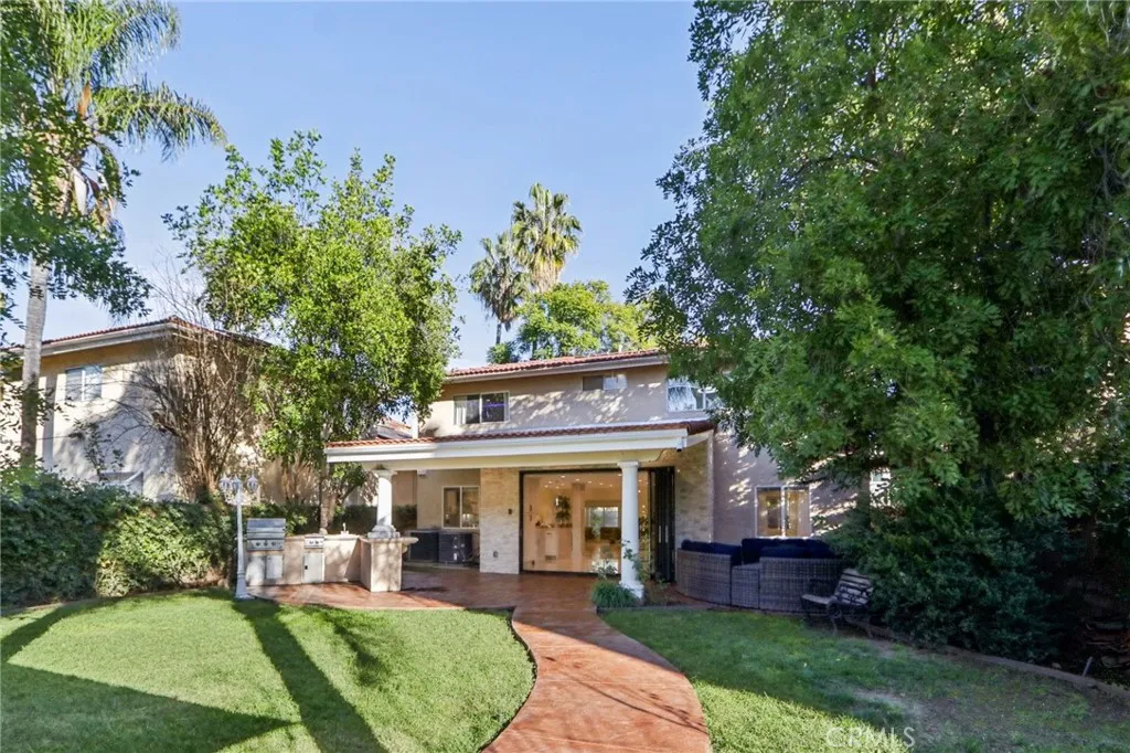 Stunning. Elegant. Immaculate. These words perfectly capture this newly remodeled Tarzana masterpiece, where luxury and craftsmanship converge. Enter through custom wrought-iron doors and step into an extraordinary residence showcasing over 2,600 square feet of impeccably designed living space with five bedrooms and four beautifully appointed bathrooms. The entertainers open floor plan is highlighted by a dramatic living room with soaring ceilings, seamlessly flowing into the dining area and a one-of-a-kind custom chefs kitchen. Featuring natural stone countertops, a generous center island, premium built-in stainless steel appliances, and bespoke finishes, this kitchen is both functional and striking. A cozy family room completes the main living space, perfect for everyday comfort or hosting guests. A grand marble staircase with custom iron railings leads to the luxurious primary suite, a true work of art. This private retreat features custom Italian paint, designer ceilings, a spacious walk-in closet with custom built-ins, and a en-suite bathroom with dual vanities and an oversized shower. Each additional bedroom is thoughtfully designed with unique, tasteful details and exceptional craftsmanship throughout. Step outside to a resort-style tropical backyard, ideal for entertaining. Enjoy a covered patio, built-in BBQ, gas fire pit, expansive grassy area, and a tranquil pond with a cascading waterfallyour own private oasis. Additional highlights include updated plumbing and electrical systems, custom interior doors, dual A/C units, a downstairs bedroom with a full bath, and