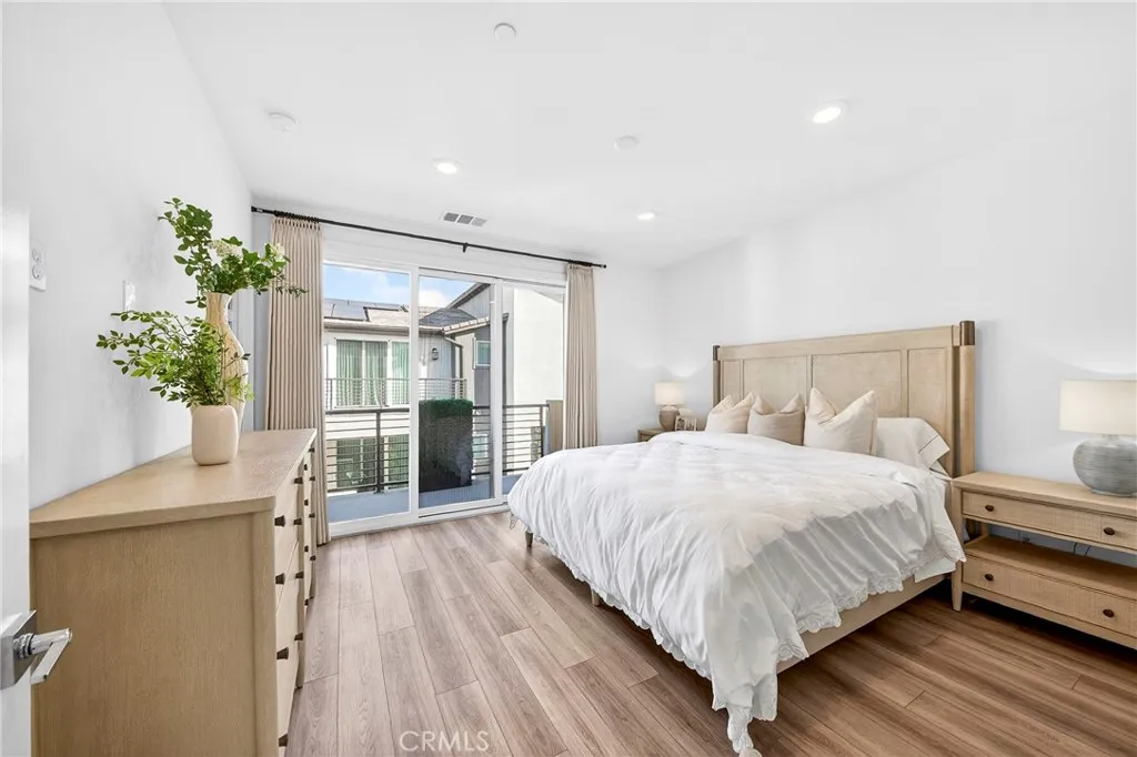 Prime location in Irvines highly sought-after Solis Park neighborhood! Built in 2024, this modern three-story residence offers a rare walk-to-school setting, located just steps from Solis Park School (Pre-K8) and within walking distance to Portola High School, both part of the acclaimed Irvine Unified School District. Enjoy convenient access to Great Park amenities including pools, parks, sports facilities, and scenic walking trails. This home features 3 bedrooms and 3.5 bathrooms, with each bedroom offering its own private full bath and walk-in closet for enhanced comfort and privacy. The first-floor ensuite bedroom provides flexible use for guests, office space, or extended living needs. The second level showcases a bright open-concept living and dining area connected to a modern kitchen, ideal for everyday living and entertaining, with direct access to a spacious private balcony. The third floor includes two additional bedrooms, highlighted by a generously sized primary suite, along with a second private balcony. Upgrades include luxury vinyl plank flooring throughout, custom window coverings, designer kitchen tile backsplash, epoxy-coated garage flooring, fully paid solar system, and a Tesla EV charging station. A turnkey opportunity in one of Irvines most desirable newer communities, offering modern design, energy efficiency, and exceptional convenience.