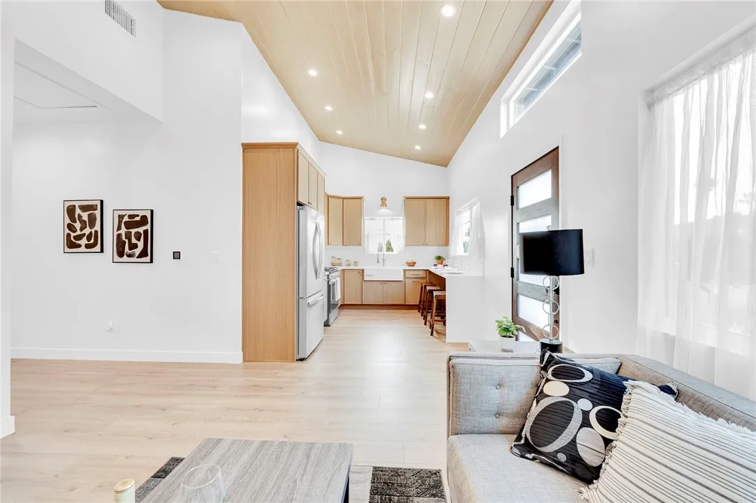 This delightful residence offers a thoughtfully designed living space, featuring two bedrooms,2 baths. The master bedroom -master bath with double sink and walk-in shower, large closet, and a door toward the deck to admire every morning. When you open the door, you will see Vaulted shiplap ceiling room - and 9 foot ceilings throughout the house, all illuminated by modern recessed lighting and natural light. Recently remodeled from roof, windows, kitchen cabinets and counters, new electrical and plumbing, new AC and heating. Love hiking? Located near Ernest E. Debs Regional Park, The Historical Ascot Park, and Elephant Hills, just minutes from the vibrant shops and restaurants of Highland Park. The home sits on a peaceful cul-de-sac and offers the perfect balance of nature and city living. The tiered front yard offers multiple outdoor spaces with different levels for entertaining, along with a larger area that's perfect for creating an additional outdoor setting with a blooming garden along the house and the retaining walls. Inside, the home has a tastefully reimagined open-concept kitchen with newer appliances and an expansive countertop perfect for cooking, hosting, and casual dining. Large windows and a seamless indoor-outdoor flow create an ideal setting and perfect vibe for al fresco meals with a view. Additional features include new central air conditioning and heating for year-round contentment. A large deck that welcomes from the entrance and goes along the house completing the master bedroom exit made out of Composite wood for durability and good comfort. A storage