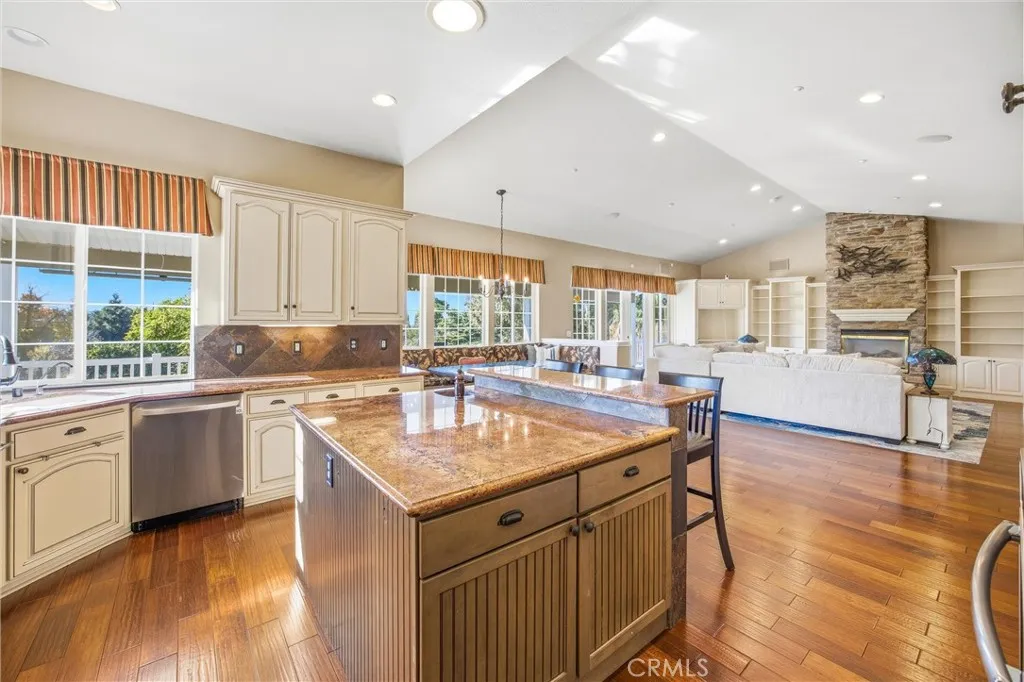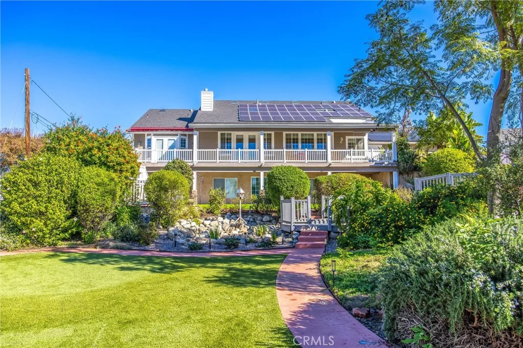 Located in the desirable hills of South Redlands, this spacious residence offers a unique blend of comfort, privacy, and exceptional outdoor living. The moment you step into the backyard, you are surrounded by an impressive collection of mature fruit trees including lemon, avocado, apple, cherry, peach, nectarine, orange, and fig, creating a peaceful setting that feels like your own private orchard. The backyard is one of the homes standout features, offering beautiful landscaping, multiple lounging and entertaining areas, and plenty of room for a future pool. Sunset views from the back porch are unforgettable, the perfect place to unwind while taking in the expansive yard and serene surroundings. Inside, the open concept kitchen connects seamlessly to the main living area, making it ideal for both everyday living and entertaining. Upstairs features large windows with motorized shades that frame the backyard, making morning coffee at the kitchen table a daily highlight. The lower level offers flexible living options with its own living space, kitchenette, multiple bedrooms including a second primary bedroom, and direct access to the backyard, ideal for extended family, guests, or multigenerational living. A spacious storage area adds convenience for seasonal items and organization. County records indicate four bedrooms; however, the home includes a second primary bedroom downstairs as part of the existing bedroom count, along with an additional guest room that meets typical bedroom criteria. An upstairs office can also be used as a bedroom, creating the potential for up to
