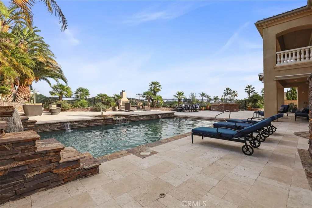 Perched above Granada Hills to capture sweeping, unobstructed mountain views, this 2007 custom estate delivers the kind of scale, craftsmanship, and resort-caliber amenities rarely found in one home. Offering approximately 5,564 sq. ft. on an approximately 22,081 sq. ft. lot, this showpiece features 5 bedrooms, 5.5 baths, a private in-home elevator, and a dedicated office (not included in bedroom count)built for elevated everyday living and unforgettable entertaining. Step inside to rich architectural detail: travertine floors, plantation shutters, bespoke cabinetry, custom crown molding, and three fireplaces (including wood-burning for warmth and ambiance). The home is an entertainers dream with a striking built-in aquarium, wet bar, surround sound, intercom, custom entertainment centers, and a spacious upper-level lounge with balconyperfect as a media/game room while soaking in the panoramic backdrop. The chefs kitchen is outfitted with premium Wolf appliances, including a 6-burner stove with grill, pot filler, food warmer, oversized refrigerator, and two Asko dishwashers. All bedrooms are en-suite and enhanced by designer custom closets. The primary suite is a true retreat with heated floors, spa-inspired bath, cedar-lined closets, built-ins, and a private balcony where the views steal the show day and night. A downstairs en-suite bedroom offers ideal flexibility for guests or multigenerational living, plus a large downstairs laundry room. Outside, escape to your private resort-style yard featuring a sparkling pool and spa with cascading waterfalls, outdoor BBQ area and