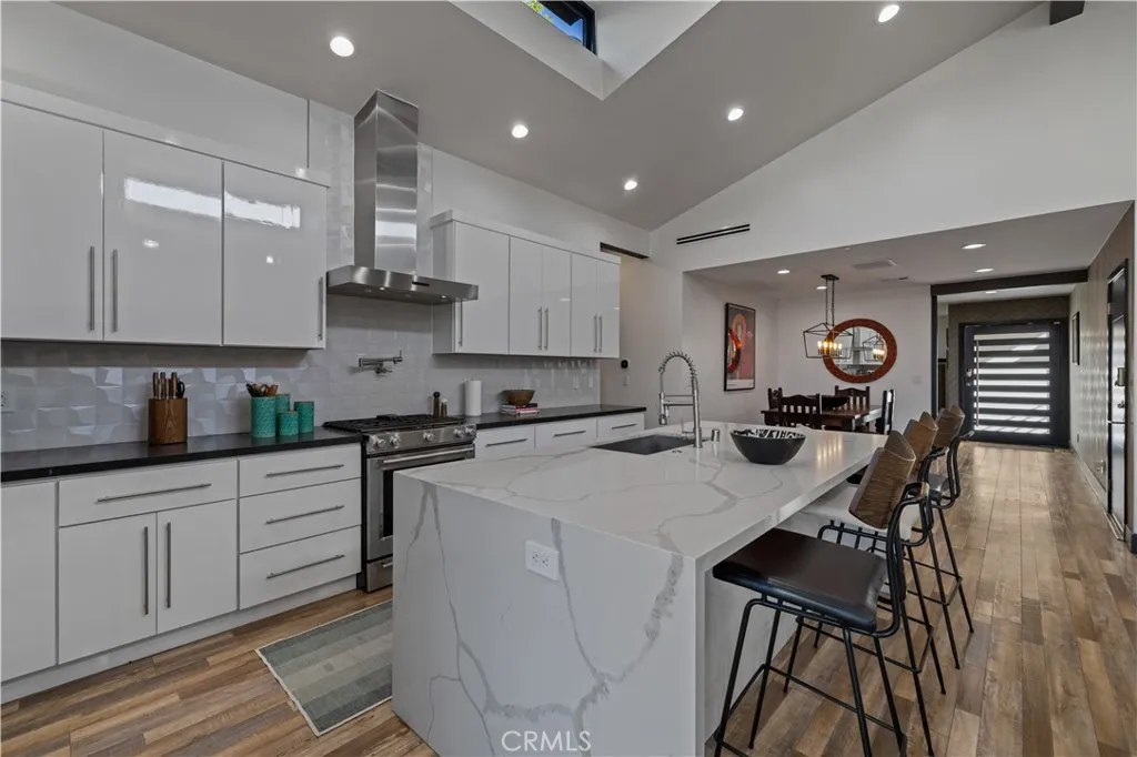 Welcome to 17929 Martha Street, an exquisite smart home where comfort, sophistication, and style are paramount. From the moment you arrive, thoughtfully curated finishes and designer touches elevate every space. The formal living room, overlooking the lush front yard, offers a calm and inviting setting for guests, while a large barn door provides a seamless transition between this cozy retreat and the expansive great room. The great room serves as the heart of the home, creating an elegant setting for dinner parties and luxury entertaining. The large kitchen is a true centerpiece, featuring abundant cabinetry, striking black quartz countertops, and an oversized waterfall island with seating for up to six. A pot filler above the stove adds both convenience and a touch of modern luxury. The expansive family room is flooded with natural light, highlighted by vaulted ceilings, large picture windows, dormer windows, and stationary glass panels that frame wall-to-wall slidersperfectly blending indoor and outdoor living. The primary suite is a private sanctuary, showcasing vaulted ceilings, exquisite wallpaper, and an elegant accent wall behind the bed. Dual walk-in closets with custom built-ins offer exceptional storage, while the lavish primary bathroom exudes spa-like tranquility. Featuring a dual vanity, an oversized shower with double rain shower heads and two hand sprayers, a large soaking tub, a wall-mounted towel warmer, and four skylights complemented by recessed lighting and accent chandeliers, this space is designed for ultimate relaxation. Additional accommodations inc