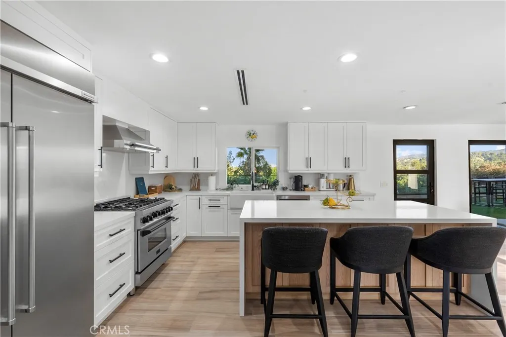Spectacular, spacious, and set South of the Boulevard atop a quiet cul-de-sac, this beautifully updated Tarzana hillside home offers sweeping panoramic canyon and treetop views with exceptional privacy. Sited on over 28,250 sq ft of land, the residence spans 4,010 sq ft with 7 bedrooms and 5 bathrooms, thoughtfully designed for comfort, flexibility, and effortless entertaining. Inside, a bright open layout showcases wide-plank flooring, recessed lighting, and multiple living areas anchored by walls of glass and large sliding doors that create a true indoor-outdoor lifestyle. The chefs kitchen is the heart of the home, featuring custom cabinetry, stainless steel appliances, and an oversized center island, flowing seamlessly into the dining and living spacesperfect for gatherings both large and intimate. Step outside to resort-style grounds with a sparkling pool and spa, lush, manicured landscaping, an outdoor kitchen/BBQ, and multiple patios and lounging areas designed to enjoy the serene hillside setting and unforgettable views. The expansive lot also offers outstanding potential for an ADU and/or future customization. Ideally located near top shopping and dining, schools, and convenient routes to both the Valley and the Westside this is Tarzana living at its finest.