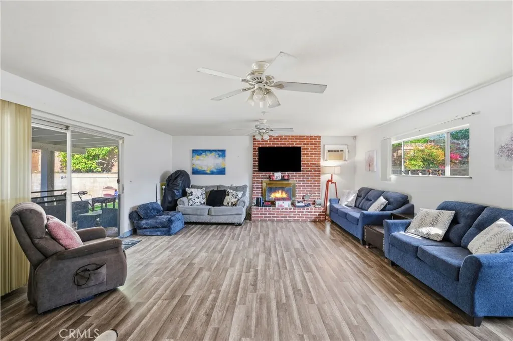 Nestled on a peaceful cul-de-sac in the prestigious Saugus neighborhood, this well-appointed single-story home. This beautiful home offers 4 bedrooms, 2 bathrooms, and 2,068 sq. ft. of thoughtfully designed living space on a 6,750 sq. ft. lot. The refined interior features new laminate flooring throughout and an inviting, open-concept layout. The light-filled living room is enhanced by expansive windows, while the generous family room with a classic fireplace flows seamlessly to the backyard. A formal dining area provides a sophisticated setting for entertaining and special gatherings. The kitchen is well-equipped with abundant cabinetry, tile countertops, and a complementary backsplash, offering both style and functionality. The private primary suite serves as a serene retreat, complete with an en-suite bathroom and generous closet space. Additional highlights include a versatile bonus room, fresh exterior paint, recessed lighting, central air and heating, and an attached two-car garage. The private, low-maintenance backyard offers an ideal space for outdoor relaxation and entertaining. Energy-efficient features include a leased solar panel system and a newer roof installed in 2022, delivering exceptional long-term value. Ideally located near award-winning Saugus schools, parks, and premier shopping destinations, this home presents the perfect balance of elegance, comfort, and convenience.