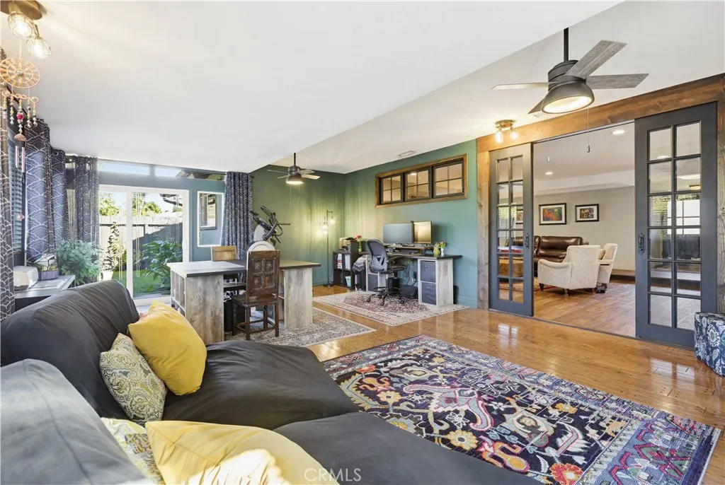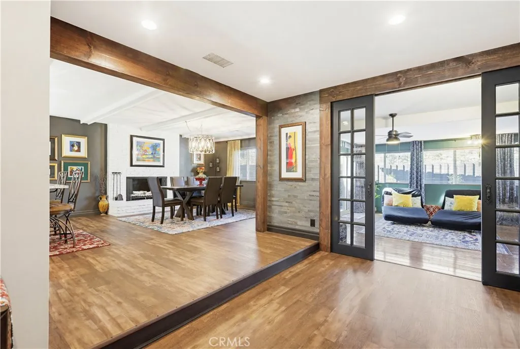 Highly desirable single level home, beautifully updated and improved inside and out, spacious and flexible floor plan, beautifully remodeled kitchen and baths, earthy color palette, and handsome features throughout. Superbly located on a beautiful tree-lined Cul-De-Sac street close to local parks and numerous hiking and biking trails nearby. The vibrant and highly manicured exterior features create a striking first impression. Step through the double door entry and soak in the gorgeous luxury vinyl plank floors and the spacious living room, a perfect space for gatherings with loved ones. Travel through to the expansive redesigned Kitchen and Dining Room with a welcoming brick fireplace, open beam ceilings, and custom lighting, an ideal environment for entertaining friends and family. The elegant, remodeled kitchen is a dream with gorgeous Granite countertops, upgraded cabinetry, double ovens, custom fully tiled backsplash, high-end stainless-steel appliances including professional grade gas range and double ovens, and a huge center kitchen island with breakfast bar. You will adore the expansive bonus multipurpose sunroom with hardwood flooring and filled with an abundance of natural light with sliders opening to the backyard spaces, perfect for rec room, family room, home office, teen hangout, and more! The primary suite is a private retreat with two closets and a beautifully updated primary bath with elegant Quartz-topped vanity and updated fixtures and faucets, framed vanity mirror, and step in shower. Two secondary bedrooms and a gorgeous guest bathroom mirroring the imp