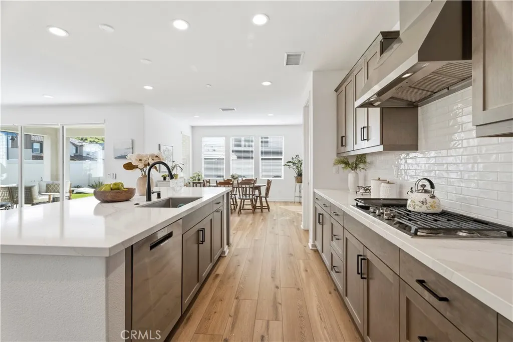 Welcome home to this stunning corner lot Skyline residence designed for real life, gathering, and growing together. This bright and beautifully neutral Lyra Plan 3 offers 5 bedrooms, 4.5 baths, a spacious loft, a downstairs den, and a rare multi-gen suite with its own private entrance, perfect for extended family or guests. From the moment you step inside, youll feel how open and welcoming this home is. Luxury vinyl plank flooring, recessed lighting, quartz countertops, and a custom built-in electric fireplace add warmth and style throughout. The open concept layout flows effortlessly, making everyday living and entertaining feel easy and connected. At the heart of the home is a gorgeous chefs kitchen that overlooks the dining area, family room, and backyard. Featuring upgraded white quartz countertops, a timeless tile backsplash, warm brown shaker cabinetry, stainless steel appliances, a farmhouse sink, and a walk-in pantry. Just off the kitchen is a thoughtfully designed guest wing with its own bedroom, full bath, and additional living space. A flexible downstairs den near the entry offers the perfect spot for a home office, playroom, or second living area. Upstairs, youll find a large open loft, a well appointed laundry room with plenty of storage, and the remaining bedrooms, one with its own en-suite bath. The private primary suite is a true retreat, complete with peek-a-boo mountain views and sparkling city lights at night. The spa-like bathroom features dual sinks with white quartz countertops, an oversized soaking tub, a tiled walk-in shower, upgraded flooring, and a