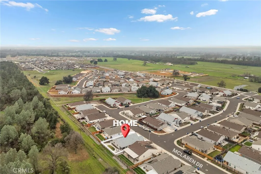 Built in 2024, this 4-bedroom, 2-bath home offers 1,823 sq ft of modern living in a desirable Shastina Ranch neighborhood in east Redding. Better than buying new, this home is already complete with fully landscaped front and backyard, irrigation, added privacy blinds, and owned solar. The open-concept floor plan is designed for easy everyday living and entertaining, while smart-home features add convenience and efficiency. Backing up to open space with no neighbors behind, the property offers rare privacy and peaceful views. Enjoy close proximity to walking trails, a neighborhood park, shopping, and more, all in an up-and-coming community thats quickly becoming one of the most sought-after places to live. A storage shed is included, making this move-in-ready home truly turnkey.