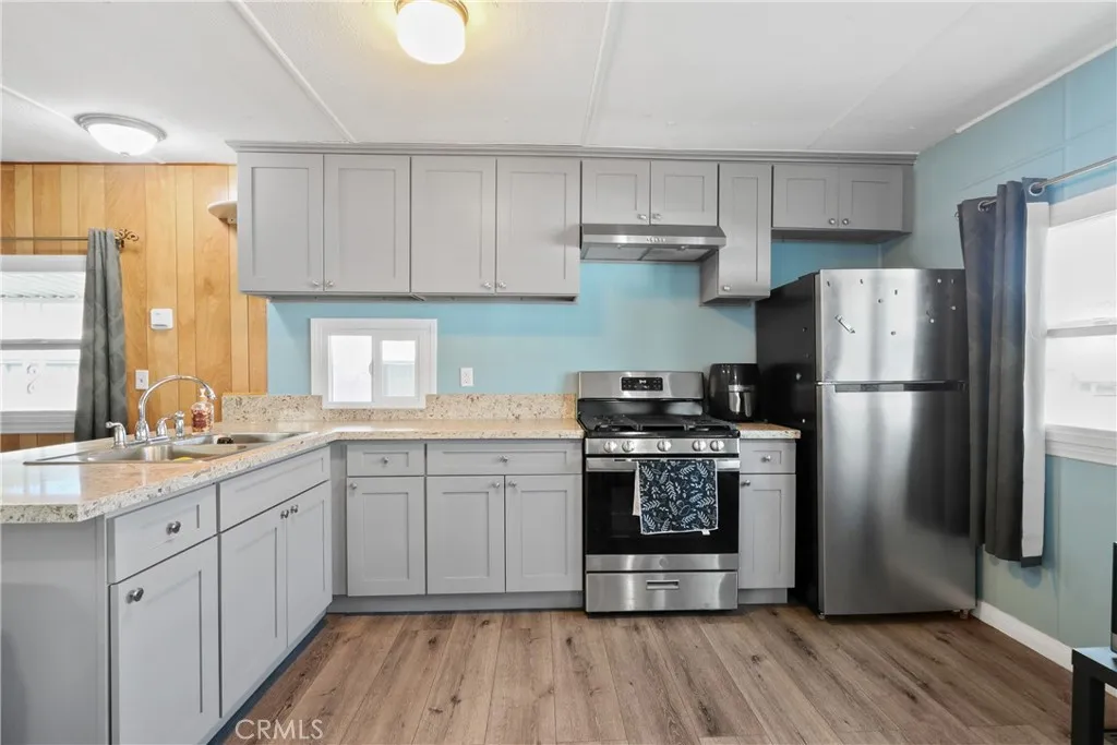 Located in a highly desirable 55+ community in Duarte, this charming end-unit home offers plenty of space inside and out. The property features two bedrooms and one bathroom, with a completely remodeled open-concept living area. Upgrades include new shaker-style kitchen cabinets with quartz countertops, laminate wood flooring throughout, dual-pane windows, and fresh interior paint. The updated bathroom showcases a modern walk-in shower. The roof, plumbing and electrical have been replaced within the last three years. Additional highlights include a covered carport, a large storage/work shed, and a separate shed equipped with a washer and dryer for added convenience. Ideally situated near shopping, scenic walking trails, and public transportation, this home offers both comfort and accessibility.