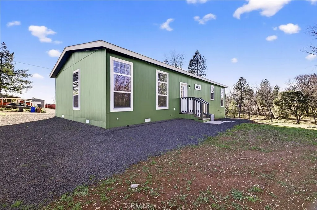 Welcome to this gorgeous, brand-new 2025 Champion Home Builders manufactured home, brought to you by a local builder, with a 7-year manufacturer's warranty. This home is situated on a spacious 0.24-acre cul-de-sac lot in lower Magalia, only about 5 minutes from Paradise. This stunning 3-bedroom, 2-bath residence offers 1,386 sq ft of thoughtfully designed living space and a perfect blend of modern style and everyday comfort. The exterior features a 175 sq ft composite deck, a recessed front entry, eye-catching 24 accent dormer, 12 eaves with generous overhangs, concrete board siding, and exterior GFCI outlets. Step inside to discover a bright, inviting interior featuring LED recessed lighting throughout, 9' ceilings, plush carpet and durable vinyl flooring, ceiling fans, and a spacious living room filled with natural light, enhanced by transom windows and wood-encased dual-pane windows. The show-stopping kitchen is both beautiful and functional, showcasing a large island with USB and Type-C outlets, a pantry, Energy Star stainless steel appliances, soft-close cabinetry and drawers, and a slide-out waste and recycling drawer. The dining area is conveniently located just off the kitchen, creating an ideal space for meals and entertaining. The home also features a well-appointed utility room with space for side-by-side washer and dryer, both gas and electric hookups, and extra storage cabinetry. Two generously sized guest bedrooms are complemented by a stylish hallway bathroom with a tub/shower combo and glass doors. Retreat to the luxurious primary suite, featuring a walk-in