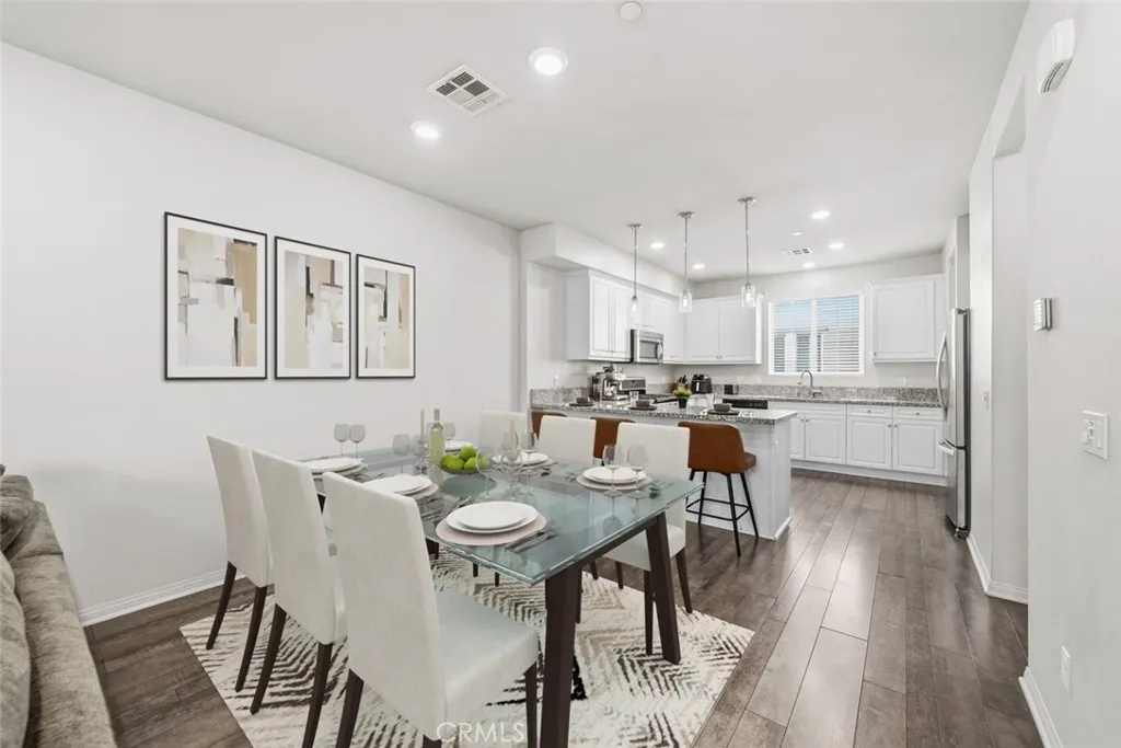 Beautifully maintained two bedroom three bathroom residence offering over 1498 square feet of thoughtfully designed living space in the heart of Van Nuys. Located within a well kept community, this home combines modern finishes, functional layout, and everyday convenience. The interior features an open concept living area with wide plank style flooring, recessed lighting, and abundant natural light. The spacious living room flows seamlessly into the dining area and contemporary kitchen, creating an ideal setting for both daily living and entertaining. The kitchen showcases white cabinetry, generous counter space, stainless steel appliances, and a center island with seating. Both bedrooms are generously sized, each with access to well appointed bathrooms, providing comfort and privacy. The home also includes multiple bathrooms conveniently located throughout the layout, along with an in unit laundry area for added functionality. The exterior community offers well maintained grounds, paved walkways, and a playground located on the property, providing an inviting outdoor space for recreation and relaxation. The neighborhood setting offers a balance of privacy and accessibility within an established residential environment. Centrally located near shopping, dining, schools, and major access routes, this Van Nuys home presents an excellent opportunity for those seeking modern living space with thoughtful amenities in a convenient location.