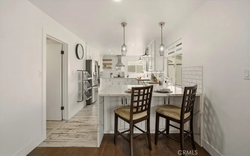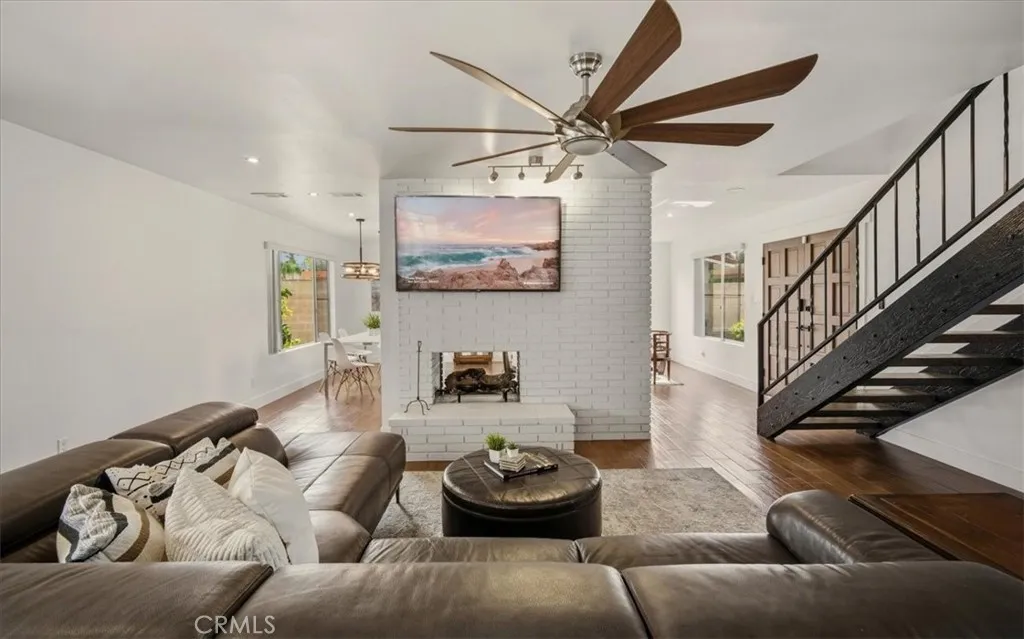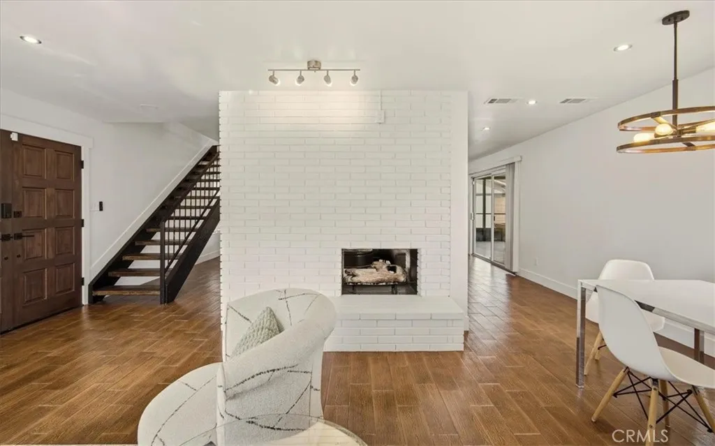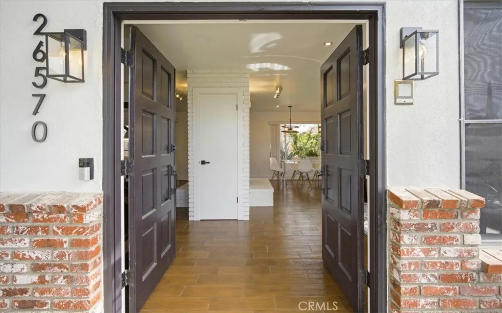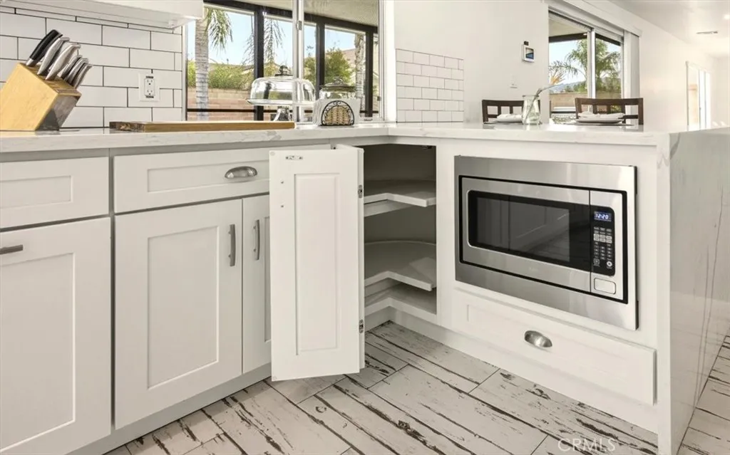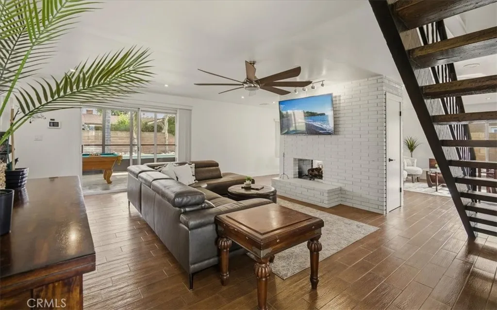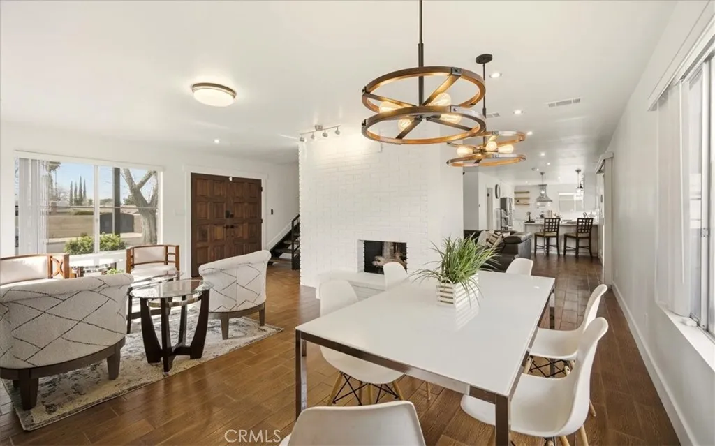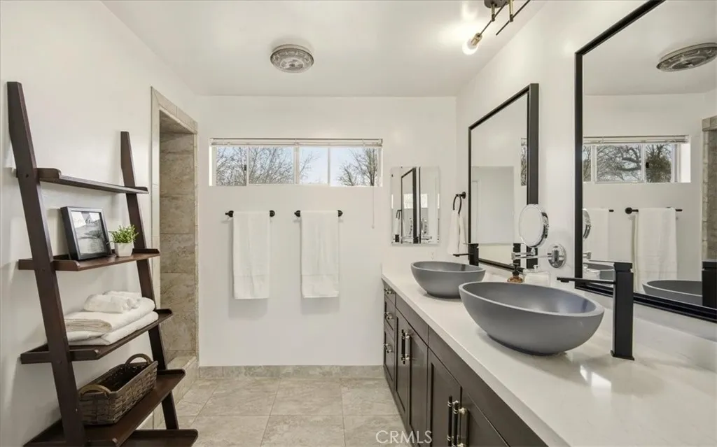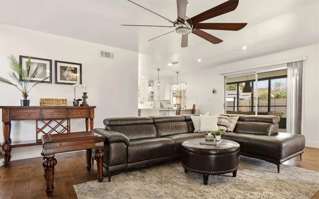 MODERN MASTERPIECE IN EAST HEMET: A MIDCENTURY SANCTUARY REIMAGINED! Step into a world where MIDCENTURY ARCHITECTURE meets 21st-century intelligence. Located on a quiet, tree-lined cul-de-sac in one of East Hemets most sought-after pockets, this custom-designed estate been meticulously REMODELED BY A DESIGNER as masterclass in light and flow. Beyond the grand double-door entry, an OPEN RISER STAIRCASE and LONG OPEN SIGHTLINES create an INDOOR-OUTDOOR FLOW, while massive windows bathe the open-concept layout in natural light. THE CULINARY HEART! DESIGNED BY A CHEF, the kitchen is a work of art featuring QUARTZ WATERFALL COUNTERTOPS, 42-inch birch cabinetry, and 100-YEAR-OLD RECLAIMED WOOD FLOATING SHELVES. This high-performance space is wrapped in counter-to-ceiling tile and equipped with: GOURMET POWER: A 5-burner cooktop with a pot filler and an upgraded stainless-steel hood. CUSTOM STORAGE: Full-length double pantry, two spice cabinets, and three corner Lazy Susan, two pot drawers and hidden waste bins TECH-FORWARD: Smart refrigerator and double ovens, all accented by multi-zoned custom lighting. LUXURY RETREATS! The oversized bedrooms offer a peaceful escape, with sleek laminate flooring and modern fans including a FRENCH-DOORED LIBRARY/FLEX SPACE. The bathrooms are professionally designed for a spa-like experience, featuring a GROTTO SHOWER with waterfall heads, 9-foot double vanities with vessel sinks, and an oversized tub with dedicated ceiling heaters. An Entertainers Outdoor Oasis! The over 9,500 sq. ft. lot is a private paradise. Poolside Living: A heated pool with