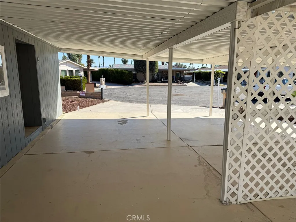 Welcome to Portola Country Club, a 55+ gated property in Palm Desert. This updated home features new interior paint, new flooring, new ceiling fans, new granite countertops, a new backsplash, and select new fixtures throughout. The home offers a spacious living and dining area, good-sized bedrooms, and additional space in the second bedroom for storage or a closet. The laundry room is located in the shed. Residents enjoy resort-style amenities including golf, pools with Jacuzzis, tennis, pickleball, bocce ball, a dog park, and a clubhouse. Conveniently located near shopping, dining, and Eisenhower Medical Center.