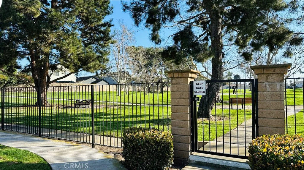 Ground-floor condo located in a desirable, gated 55+ community of only 98 homes in Huntington Beach, just minutes from the beach and local amenities. This home enjoys a peaceful park-front setting, facing Taylor Park with expansive greenbelts and mature trees that provide a serene and private backdrop. The spacious bedroom features a large walk-in closet offering abundant storage and convenient space for a stackable washer and dryer. The bathroom includes a single vanity and a shower-over-tub combination. The light and bright cottage-style kitchen offers Formica countertops, wood cabinetry, and an electric range. This well-established community offers comfortable, low-maintenance living in a prime coastal location. 1 assigned parking space. HOA fee includes water and trash. Please note: Per the HOA's CC&R's, at least one resident has to be 60yrs of age for the downstairs Units.