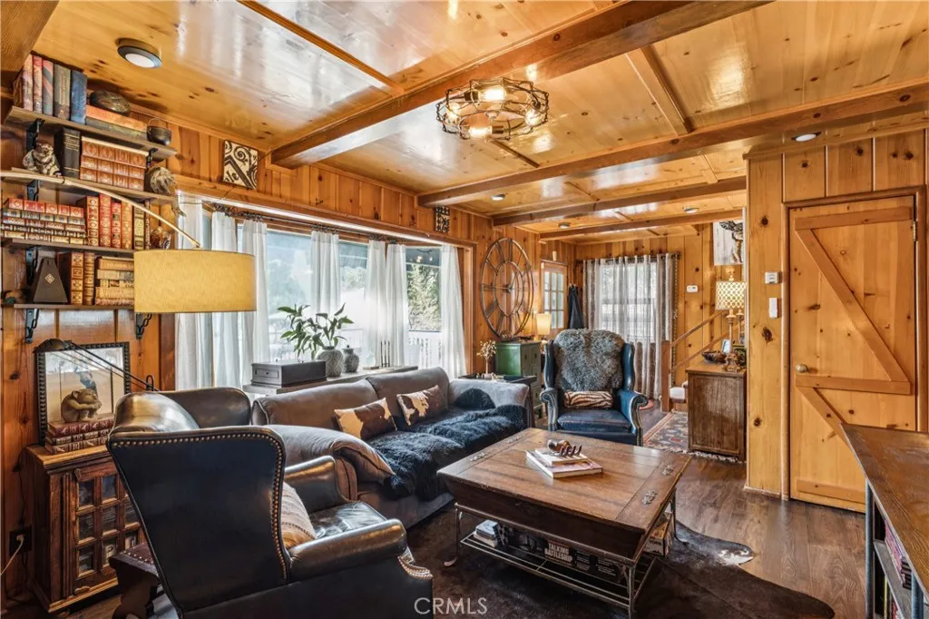 Modern rustic lake house blends nostalgic charm with updated luxury. Above the shores of Lake Gregory & moments from the heart of town. A one-of-a-kind mountain retreat captures the warmth of a classic mountain chalet yet offering comfort, efficiency, & convenience of a renovated Smart home. The oversized deck/porch provides an amazing setting, with ridgeline & lake views through the surrounding majestic cedars. Great for entertaining under the stars, watching 4th of July fireworks, & embracing the mountain resort lifestyle. Ideally located near lake trails, shopping, dining, entertainment, local services, & year round activitiesthis also makes for a great commuter location! The exterior features new decking, retractable awnings, 4+car parking, beautifully landscaped terraced gardens, a fenced oasis of a backyard creating a sense of privacy, two storage sheds (one with power), new retaining walls, upgraded electrical panel with room to grow, EV charger, & generator. Inside, new wood flooring & carpet complement custom oak ceilings, wood burning fireplace, copper plumbing, upgraded electrical with dimmers, farmhouse-style ceiling fans, mini-split, and top of the line amenities. The main level offers a welcoming living room, beautifully refurbished kitchen (wifi appliances & butcher block counters), dining area, bathroom, laundry, and direct access to the serene back yard. Upstairs are two bedrooms, including a luxurious primary ensuite with jetted spa tub with light therapy, bidet, and skylight. Second bedroom doubles as inspiring office/creative studio, complete with fiber