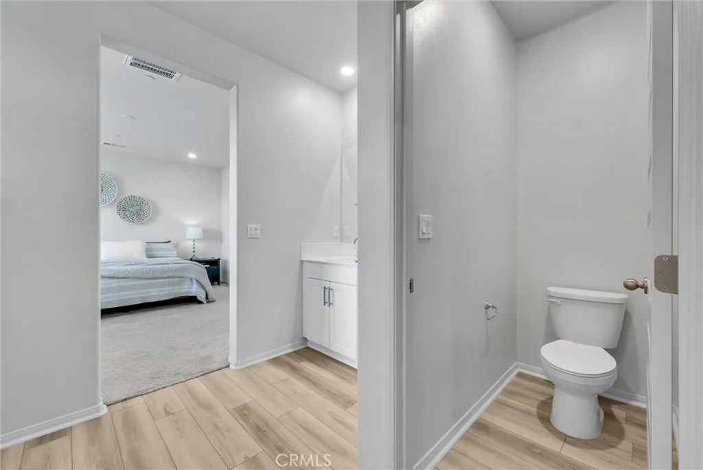 (LOW HOA Due, LOW Property Tax Approx. 1.1%, & NO Mello-Roos/CFD) Beautifully Newer Built in 2024, 3-bedroom, 2.5-bath home offering 1,684 sqft of bright & inviting living space. Located close to the community pool, and picnic area, this home combines comfort, convenience, and community. Enjoy a spacious two-bay garage with storage racks & owned solar panels for energy efficiency & also multispeed HVAC system, spray foam insulation, & high-performance air filtration. Inside, the home features fresh paint, chrome fixtures throughout, and an open floor plan ideal for modern living. The chefs kitchen showcases a large island, countertops with a granite backsplash, plenty of cabinetry with pantry, and stainless-steel appliances including a gas range, dishwasher, and micro-hood. All bedrooms are located upstairs, including a primary suite with a walk-in closet and private walk-in closet. Bathrooms include high-efficiency toilets & dual sinks. Additional included amenities feature a refrigerator, washer, dryer, reverse-osmosis (RO) drinking system, and water softener ~ providing true move-in-ready convenience. Situated just minutes from major freeways (SR-60 and I-15), whether commuting to work, exploring the mountains, or heading to coast. (Lives like a SFR, property is zoned as the detached condo.)