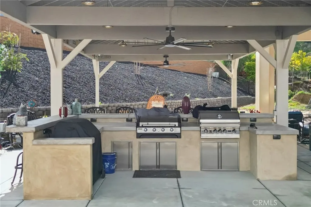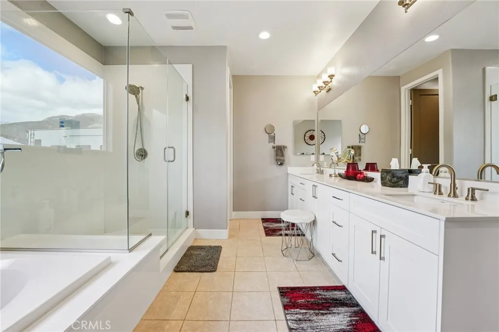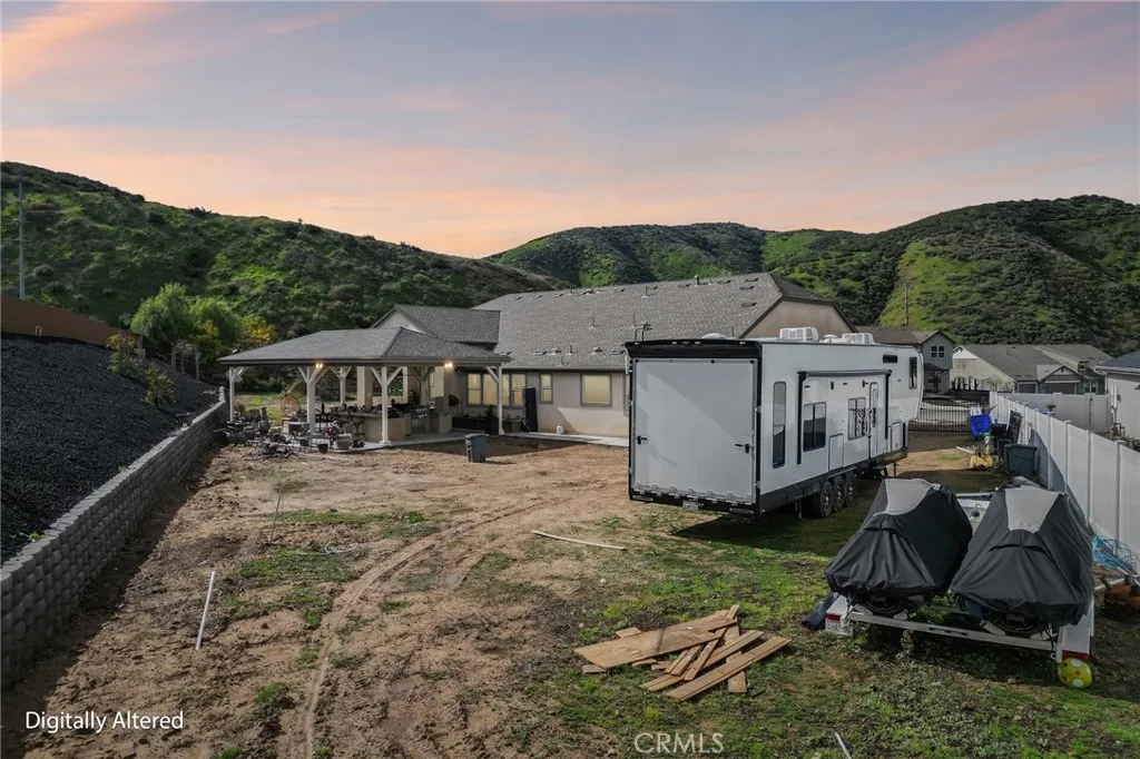 NEARLY 3/4 ACRE LOT! 2022 YEAR BUILT! BEST VALUE IN YUCAIPA! Welcome to 34676 Conadria Avenue, Yucaipa, CA 92399, located in the exclusive gated community of Mountain Gate by CrestWood Communities. Recently built in 2022 and truly better than new, this stunning single-story home offers 4 bedrooms, 3.5 bathrooms, and 2,814 square feet of beautifully upgraded living space, situated on a premium 32,119 square foot, end of a cul-de-sac lot with exceptional privacy and gorgeous mountain views! The interior is spacious with an open concept layout designed for modern living and effortless entertaining. Luxury vinyl plank flooring flows throughout the main living areas, complementing the light and bright interior. The huge great room includes a stacked stone accent wall and a built-in entertainment center. The gourmet kitchen features quartz countertops, a large island with breakfast bar seating and pendant lighting, stainless steel LG Signature appliances, white cabinetry, and a large walk-in pantry. The oversized primary suite is a private retreat, featuring generous space, a spa-inspired bathroom, and ample closet storage. There are 3 secondary bedrooms that are each thoughtfully positioned, offering comfort, privacy, and flexibility for guests, or multigenerational living! Enjoy the entertainers dream back with custom 40' x 20' covered patio creating an incredible outdoor living space, complete with a built-in outdoor bar - perfect for year round gatherings. The expansive lot offers endless possibilities, enhanced by a retaining wall, gated RV parking, the gutters in the back o