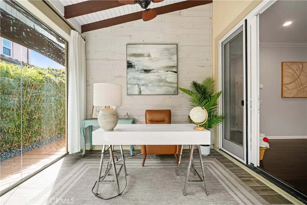 Spacious 4-bedroom, 3-bathroom single-family residence featuring a private two-car driveway and a highly desirable floor plan with one bedroom and one 3/4 bathroom conveniently located on the first floor. Situated on a corner lot in the desirable Woodbury community, the home offers enhanced privacy and a lush green landscape wall view. The property includes an enclosed California room of approximately 140 sq. ft., added by the previous owner as a bonus area. This space is not included in the official living area of 2,387 sf. Permit status is none. Seller is a licensed real estate agent. Buyer to verify all information to their own satisfaction. Highly rated Woodbury Elementary School is conveniently located within the community. Just steps from the tree-lined Jeffrey Trail, ideal for walking, jogging, and outdoor recreation. Residents enjoy exceptional community amenities, including multiple playgrounds, 7 swimming pools, 3 tennis courts, 4 pickleball courts, 2 basketball courts, and a sand volleyball court. Close to Woodbury Town Center, offering Trader Joes, Home Depot, LA Fitness, coffee shops, and a variety of dining options. Popular Asian grocery stores, boba shops, and restaurants, including 99 Ranch Market, H Mart, Mitsuwa, and HEYTEA, are just minutes away by car.