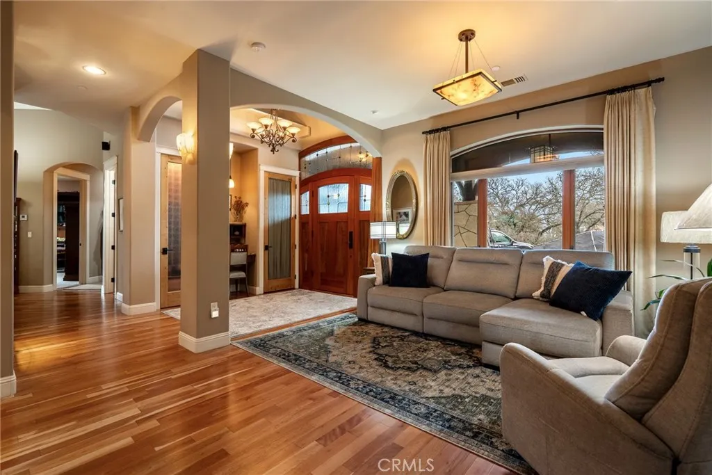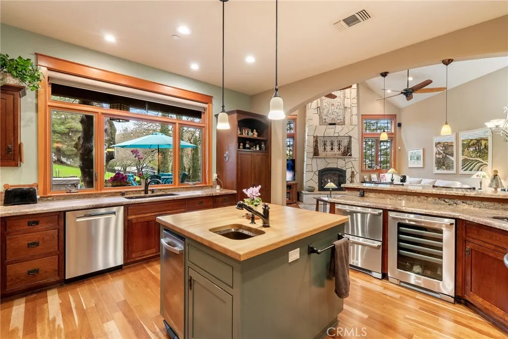 Located on the desirable West Side of Paso Robles, this custom-built 2010 Craftsman home blends thoughtful design, quality construction, and exceptional walkability just moments from downtown restaurants, wine bars, and City Park. Built with 6-inch thick interior and exterior walls, the residence offers enhanced durability, efficiency, and comfort. Inside the 2,600 sq ft main home, hardwood floors flow through the kitchen, living room, family room, and hallways, while Milgard dual-pane windows with craftsman trim bring abundant natural light. Energy-conscious upgrades include owned solar, fire sprinkler system, tankless Rinnai water heater, and fire and home security systems. The chefs kitchen showcases custom Morro Bay Cabinets, granite countertops and backsplash, a butcher block island workstation, and an impressive 23" x 104" breakfast bar. Premium appliances include two dishwashers, two ovens, refrigerator, built-in microwave, wine cooler, and trash compactor, making the space ideal for entertaining and everyday living. The primary suite retreat features a fireplace, private patio access, and a cathedral-style sunken ceiling. The spa-inspired en-suite bathroom offers a 10-foot dual vanity with seated personal vanity area. The walk-in closet features built in organization systems and is plumbed for a stacking washer and dryer inside. Additional highlights include a 650 sq ft studio ADU with full kitchen and bath, providing flexible options for guests, rental income, or multi-generational living. Outdoor living is equally impressive with a back patio featuring a wood-bu