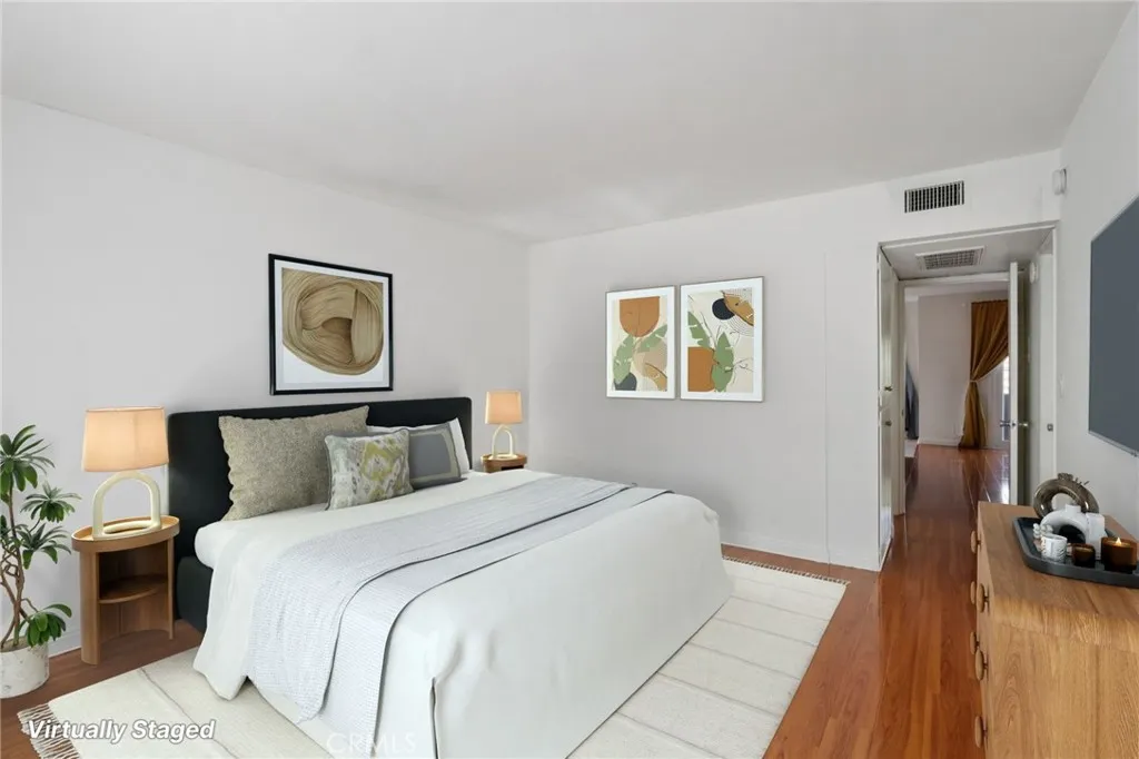 Welcome home to this thoughtfully updated upper-level one-bedroom residence, where comfort and intentional design come together effortlessly. From the moment you enter, youre greeted by natural light and a warm, inviting living space. The expansive living area flows seamlessly into a well-appointed kitchen featuring stainless steel appliances, generous cabinetry, and space for dining. The spacious bedroom offers a walk-in closet for ample storage, while the renovated bathroom showcases Carrara marble flooring and Moen chrome fixtures for a clean, modern feel. Step outside to your private balcony overlooking lush greenery, an ideal retreat for morning coffee or unwinding at the end of the day. Additional improvements include new windows and sliding door, updated electrical, including sub panel, an updated HVAC system, water heater, plumbing valves and supply lines. The secure building offers desirable amenities including a pool, spa, gym, barbecue area, and on-site laundry. One assigned parking space is included. Ideally located near Ventura Boulevards vibrant dining and shopping scene, this move-in-ready gem offers the perfect blend of style, convenience, and comfort. Photos are virtually staged.