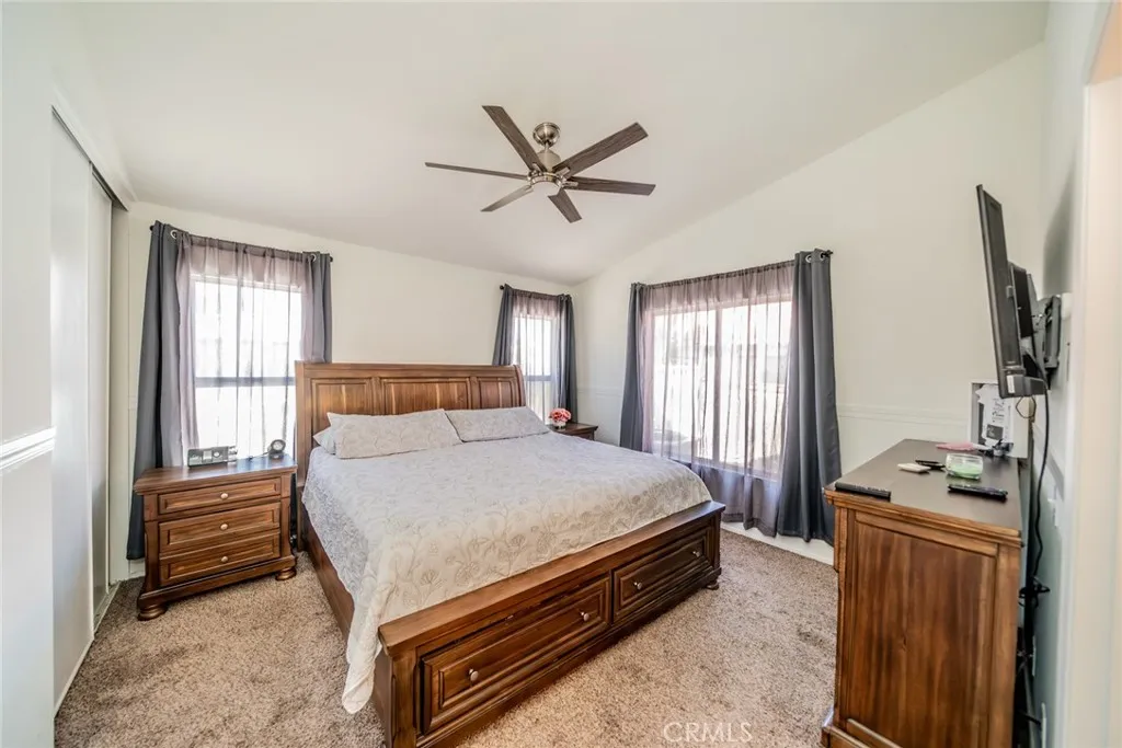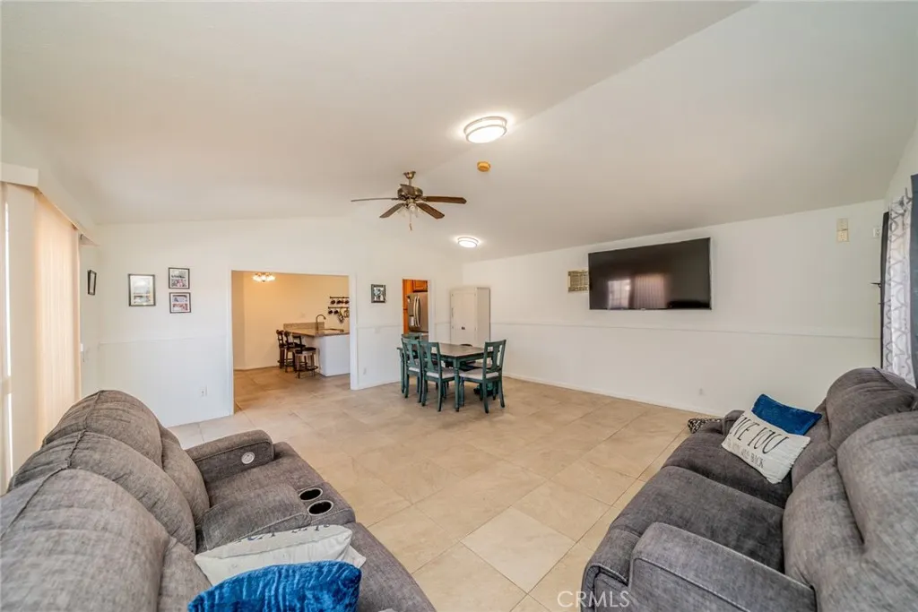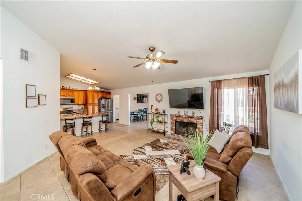 Come have fun in the desert sun at this beautiful 3-bedroom, 2-bath sparkling pool home offering space, comfort, and fantastic entertaining potential. A Spanish tile roof and welcoming pergola greet you at the entrance, creating a warm first impression. Inside, youll find gorgeous tile flooring throughout the main living areas, carpeted bedrooms, vaulted ceilings, and a bright open floor plan connecting the entry, living room, dining area, and kitchen. The living room features a charming brick fireplace, perfect for cozy mornings, relaxing evenings, and family gatherings. The kitchen offers granite countertops and a convenient breakfast counter. An extra special feature is the approx. 400 sq. ft. bonus/game room with backyard accessideal for watching the big game, playing billiards, or even creating a potential ADU for extended family or added income. Step outside to enjoy plenty of patio space for gatherings, barbecues, and pool parties, along with a sparkling heated in-ground pool and spa. The yard also features a grassy area and an adorable playhouse that can double as storage. Conveniently within walking distance to a school and park, plus RV parking, a two-car garage, and an assumable solar system to help save on energy costs. Come see for yourselfschedule your private showing today!!! Sellers are ready to move!