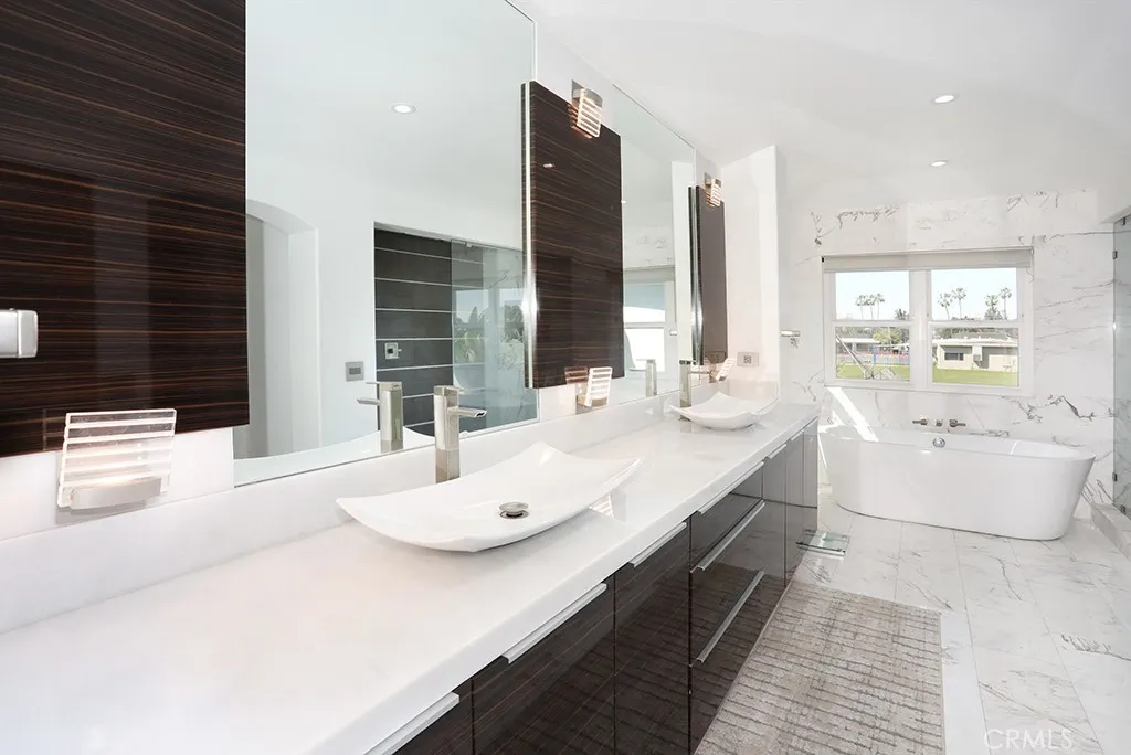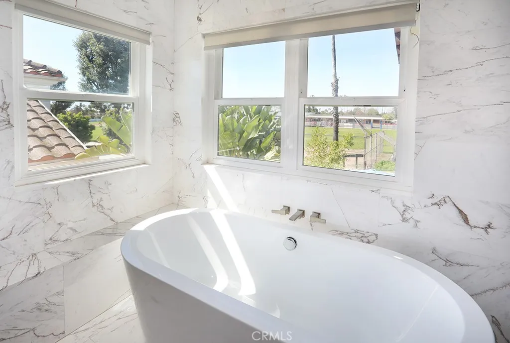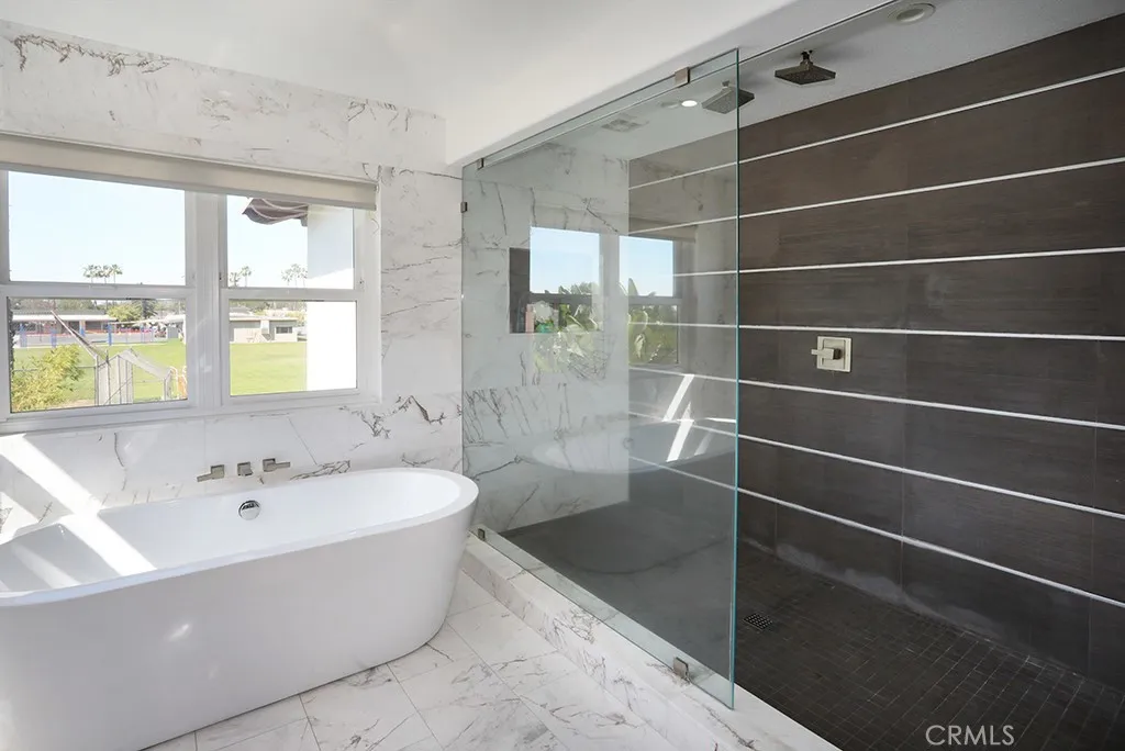 MODERN ELEGANCE! Largest model PLAN 6 in GATED COMMUITY of MALAGA in Tustin Ranch across from Tustin Ranch Golf Club. Completely REMODELED. Gorgeous BRAZILIAN WOOD flooring and stunning MARBLE FLOORING throughout, NO CARPET. RARE - 5 Bedrooms, 4.5 Bathrooms, SPARKLING POOL, SPA & WATERFALL with Cobalt Blue Tiles. Enjoy multi-colored lights for pool. Gazebo in backyard with built-in BBQ Island with refrigerator, burners, surround sound and swim up bar. No neighbors behind you. Convenient downstairs bedroom and bath with shower. 3 car ATTACHED garage with built-in cabinetry and stone floors. Electric shades on NEW windows. DUAL AC, Heating and water heater. Gorgeous GOURMET kitchen with Marble Island with Waterfall Edge and Stainless Appliances, 5 Burner Gas Cooktop with Overhead Stainless Vent. WALK-IN PANTRY with custom organization. Sleek White Cabinetry with Pull-Out Drawers and Soft Close. Stunning REMODELED bathrooms. Modern Glass and Stainless Steel staircase with wood stairs. Primary Bedroom Suite with soaking tub and walk in shower. Primary walk-in closet with upgraded organization. Downstairs LAUNDRY ROOM with Washer and Dryer, granite counters and sink. Designer ceiling fans. Beautiful professionally landscaped back and front yard with automatic sprinklers. Convenient Market Place and District Shopping. Close to Highly Rated Schools. Parks and Peters Canyon Trails Close by. No Mello Roos. Low HOA $135.
