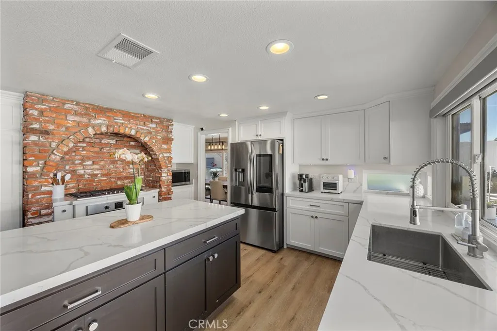 Step into luxury and comfort in the prestigious, 24-hour guard-gated community of Green River. This isnt just a house; its a beautifully upgraded sanctuary designed for modern living and endless sunshine! The airy, open floorplan and soaring vaulted ceilings keep the home bathed in natural light. The home glows with gorgeous newer luxury vinyl flooring. Chefs Paradise: A recently remodeled expansive kitchen featuring sleek quartz countertops and a massive social island with a built-in wine fridge. High-end stainless steel appliances are perfectly complemented by a unique interior brick architectural feature above the range. The staircase has been reimagined and catwalk widened to create a sense of grand, open space between levels. Main Level: Includes a convenient bedroom and full bathroom. Upper Level: Home to three additional oversized bedrooms, including a palatial primary suite behind elegant French doors. Resort-Style Living Every Day For a low monthly HOA of just $232, you aren't just buying a homeyoure joining a vibrant community! Enjoy access to: Recreation: Olympic-sized pool, kids' pool, jacuzzi, sauna, and a full gym with locker rooms. Sports: Tennis, basketball, and indoor racquetball courts. Community Fun: Movie nights with popcorn, ice cream socials, holiday parties, and ping-pong tournaments at the grand clubhouse. Outdoor Perks: Picnic grounds, BBQ areas, and a dedicated dog park for your furry friends. Nestled right next to the Green River Golf Course, youll enjoy breathtaking views of Chino Hills State Park. Plus, with lightning-fast access to the 91, 241,