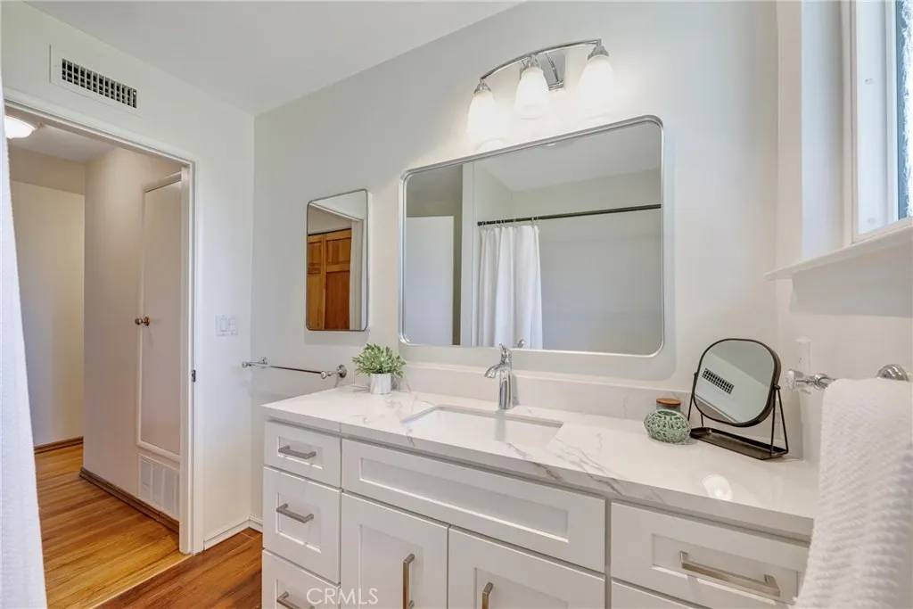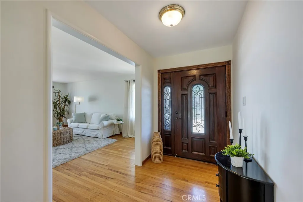 Welcome Home to this spectacular home nestled away in a prime location located in the highly sought-after Tustin Unified School District. Upon entering, you will feel immediately at home in the warm and inviting living room showcasing original hardwood floors and a gas fireplace. Interior French doors open into a bright, spacious kitchen featuring granite countertops, stainless-steel appliances, and newly painted cabinets. Adjacent to the kitchen is a dining area with additional French doors that lead to an impressive patio and an oversized backyard, perfect for relaxing summer evenings. The primary suite includes mirrored wardrobe doors, an updated 3/4 bath, and a fantastic view of the oversized backyard. Two additional bedrooms, a newly remodeled guest bath featuring Kohler Lux Stone and laundry space are well-positioned to create a seamless flow throughout the home. Additional highlights include hardwood floors throughout, a solid mahogany front door, freshly painted interior and a fantastic family-oriented cul-de-sac street. Located in the award-winning Foothill High School, Tustin Unified School District. Close to Old Town Tustin shopping, dining and local coffee spots. Also, easy access to the 5, 55 and 22 freeways. Don't miss out on this fantastic home!