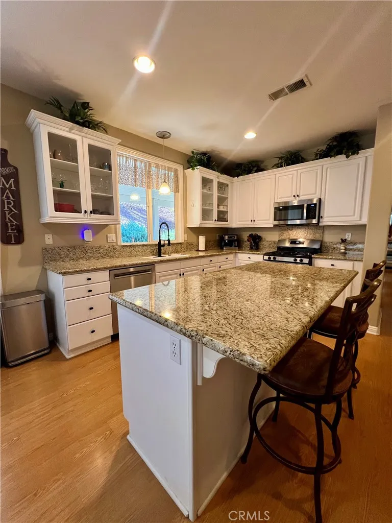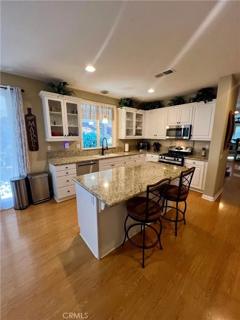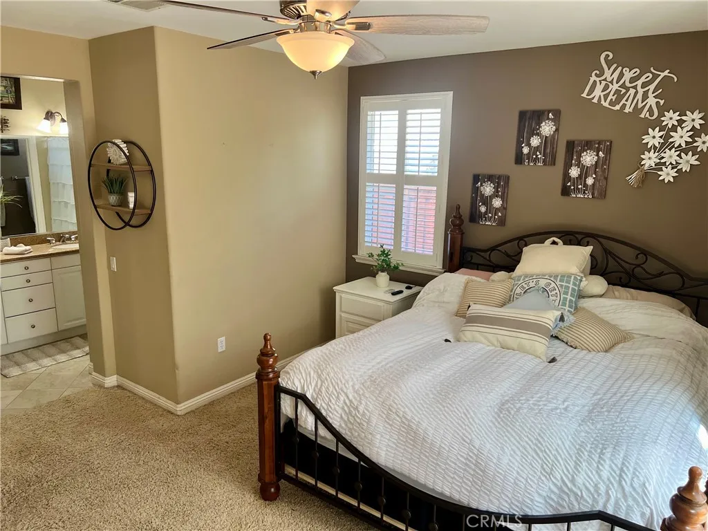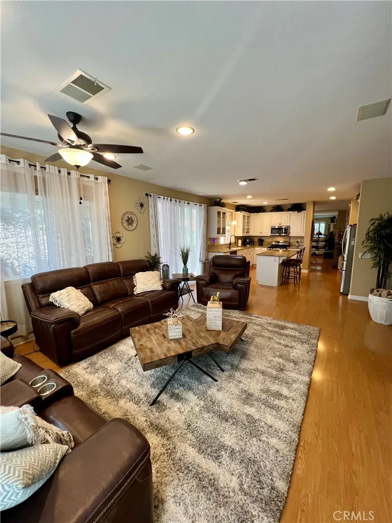 Prepare to be awestruck by this breathtaking, completely renovated single-story grey-and-white masterpiece in The Four Seasons Hemet, a prestigious gated golf community designed exclusively for 55+. Situated on a quiet cul-de-sac with serene views of the adjacent golf course, this home offers unparalleled luxury and turnkey convenience. Step inside to discover an open, light-filled floor plan featuring a versatile office/flex space (legal third bedroom) that flows effortlessly into the formal dining area, highlighted by a stunning chandelier. The chefs dream kitchen boasts gleaming white cabinetry, recessed lighting, granite countertops, and stainless steel appliances, including a refrigerator, dishwasher, microwave, and gas range/oven. The adjoining family room is perfect for entertaining, featuring a cozy gas fireplace flanked by elegant built-ins, and abundant natural light streaming through dual-paned windows and sliding glass doors that lead to two covered patios. This home features two expansive primary suites, each with en-suite bathrooms and walk-in closets. One bathroom showcases dual white sinks and a walk-in shower, while the other offers a tub/shower combinationboth echo the homes sophisticated aesthetic. Step outside to your private outdoor oasis with two concrete-floored patiosa massive Alumawood patio and a lattice-covered patioperfectly connected by a built-in BBQ island. Lush landscaping and planters complete this entertainers paradise, ideal for relaxing or hosting gatherings just steps from the golf course. Enjoy resort-style living with amenities includi
