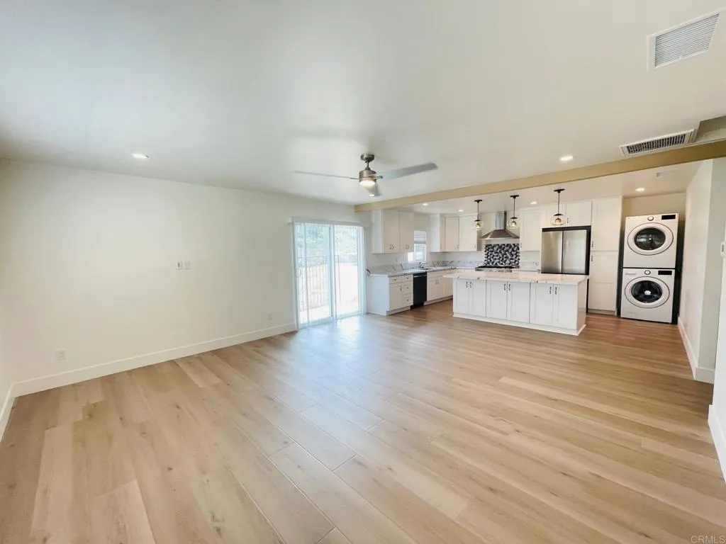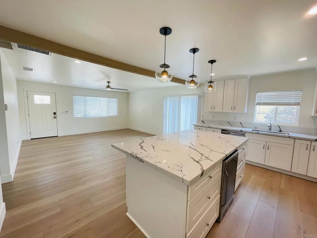 Welcome to 15715 Ziegler Court, Ramona, CA 92065 a fully reimagined, single-level luxury residence perched atop a quiet cul-de-sac in the coveted San Diego Country Estates. Renovated in 2023 under the direction of award-winning La Jolla designer April Worell, this home blends architectural sophistication with refined interior design. Inside, imported wood-grain porcelain tile flooring, quartzite countertops, and curated designer backsplashes create a cohesive, contemporary aesthetic. A stylish wine bar with floating redwood shelves adds both function and visual appeal. The gourmet kitchen serves as the heart of the home, featuring custom solid wood cabinetry, designer hardware, alabaster pendant lighting, and an oversized island ideal for entertaining. Premium appliances include Bosch and ZLINE, complemented by a Kraus single-bowl sink, under-cabinet lighting, and a powerful dual 650 CFM commercial-grade exhaust system. The primary suite offers a spa-inspired retreat, complete with a Bain Ultra stone soaking tub, a cultured limestone walk-in shower, and Toto fixtures, including a Washlet system. Thoughtfully selected plumbing and lighting fixtures elevate the experience throughout. Upgrades include new vinyl windows and sliders, Emtek door hardware, updated HVAC ducting, a whole-house exhaust fan, a new 50-gallon gas water heater, fresh interior and exterior paint, and a durable concrete tile roof. Energy efficiency is a standout feature, with an approximately 14.4 kW owned solar system, two Tesla Powerwall batteries, and a SPAN smart electrical panel, offering enhanced su