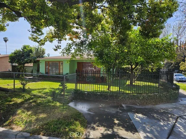 "PREMIER Corner lot - ADU Potential - Rare Urban Orchard" This rare, oversized corner lot dwarfs neighboring parcels and features a spacious living room, 3 standard-sized bedrooms, a bathroom with walk-in shower, a kitchen, and a dining room. A carport and DUAL driveways provide a private entrance - perfect for a future ADU or RV. Buyer to verify with the city. The backyard features immediate harvest from high-value, mature, fruit-bearing trees, including guavas, tangerines, lemons, figs, loquats, pomegranates, avocados, and mangoes. Relax in the serene, open-air BBQ patio - a private retreat designed for al fresco dining and family gatherings. The property has a beautiful iron fence, which is perfect for security and privacy. This charming home perfectly blends comfort and accessibility as it is conveniently located near premier shopping centers, easy access to the 210 FWY, and is within walking distance of Maxwell Academy and nearby parks. All keep you connected to the surrounding region while maintaining a peaceful neighborhood feel. With its lot size of 7,545 sq ft, this massive footprint is a rare find for developers and investors looking to maximize density and ROI. It offers unrivaled potential and immediate outdoor luxury. Property is SOLD-AS-IS. A must-see!