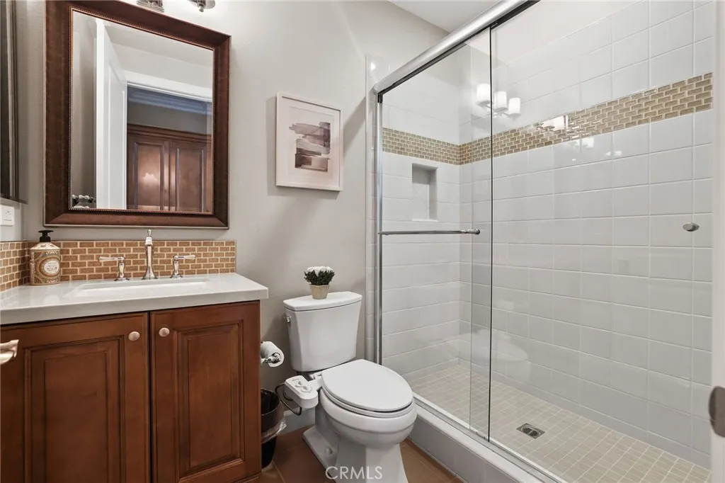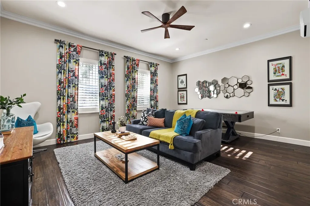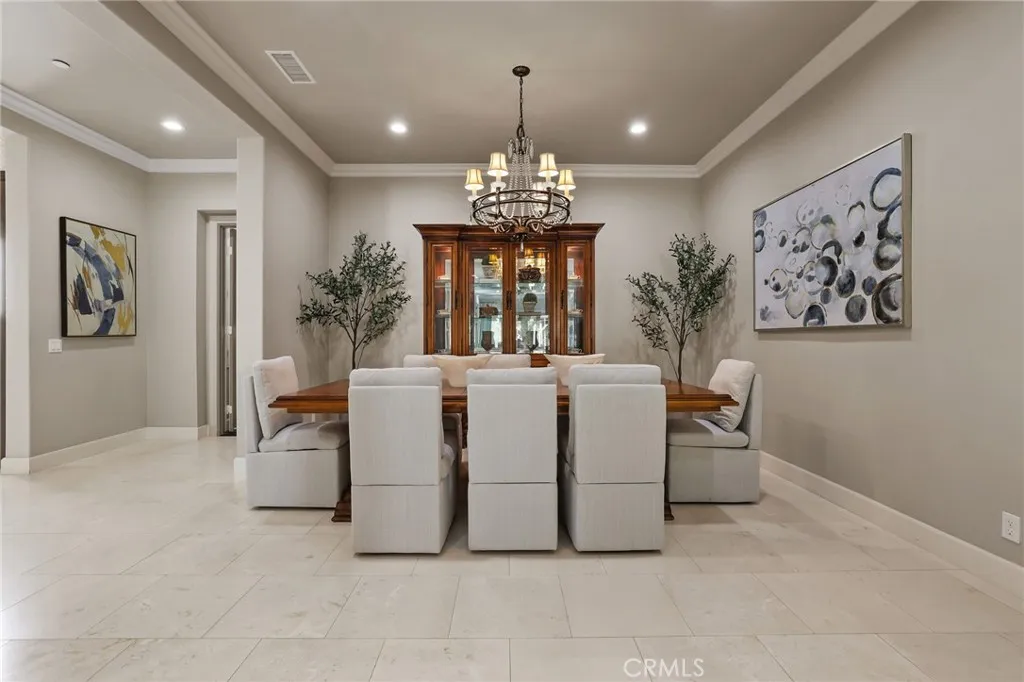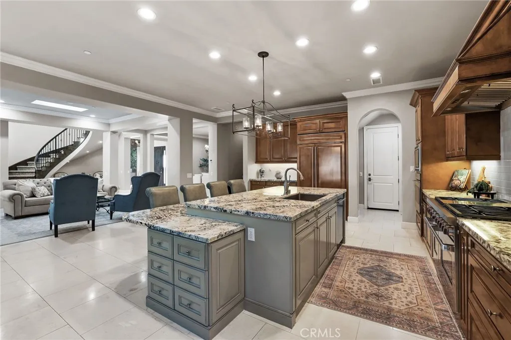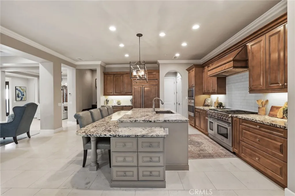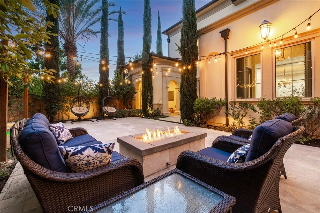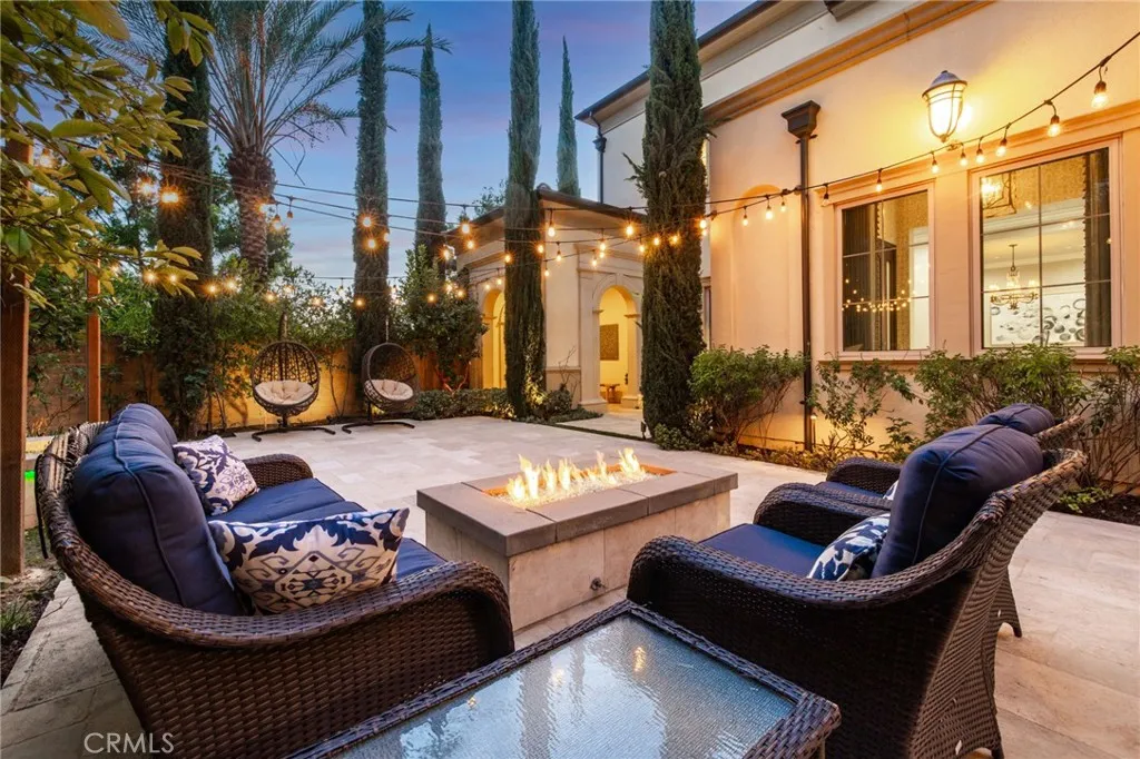 Tucked away on a quiet cul-de-sac, this exceptional Mediterranean-inspired residence blends timeless architecture with refined interiors and true resort-style indoor-outdoor living. A manicured front yard and elegant covered entry lead into a private courtyard, setting an immediate tone of sophistication and privacy. Inside, soaring ceilings, custom columns, crown molding, and abundant recessed lighting enhance the open and airy floor plan. Formal living and dining areas flow effortlessly, offering ideal spaces for both everyday living and elegant entertaining. Durable tile flooring spans the main level, adding warmth, durability, and an elevated sense of luxury. The gourmet kitchen serves as the heart of the home, featuring rich cabinetry, granite countertops, a generous center island with seating, high-end built-in appliances, and designer lighting. It opens seamlessly to a spacious family room with a cozy fireplace, custom built-ins, and expansive windows that fill the space with natural light. The main level offers outstanding flexibility with a private bedroom and en-suite bathroom, ideal for guests or multi-generational living along with a dedicated entertainment or media room and a stylish powder room for added convenience. Upstairs, a spacious loft with built-in cabinetry provides versatile space for a secondary family room, study area, or home office. The luxurious primary suite features a sitting area and spa-inspired bathroom with dual vanities, a soaking tub, and a large walk-in shower. Three additional bedrooms each include private en-suite bathrooms, offering