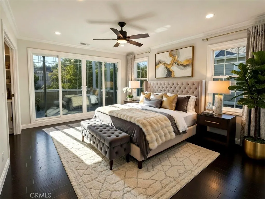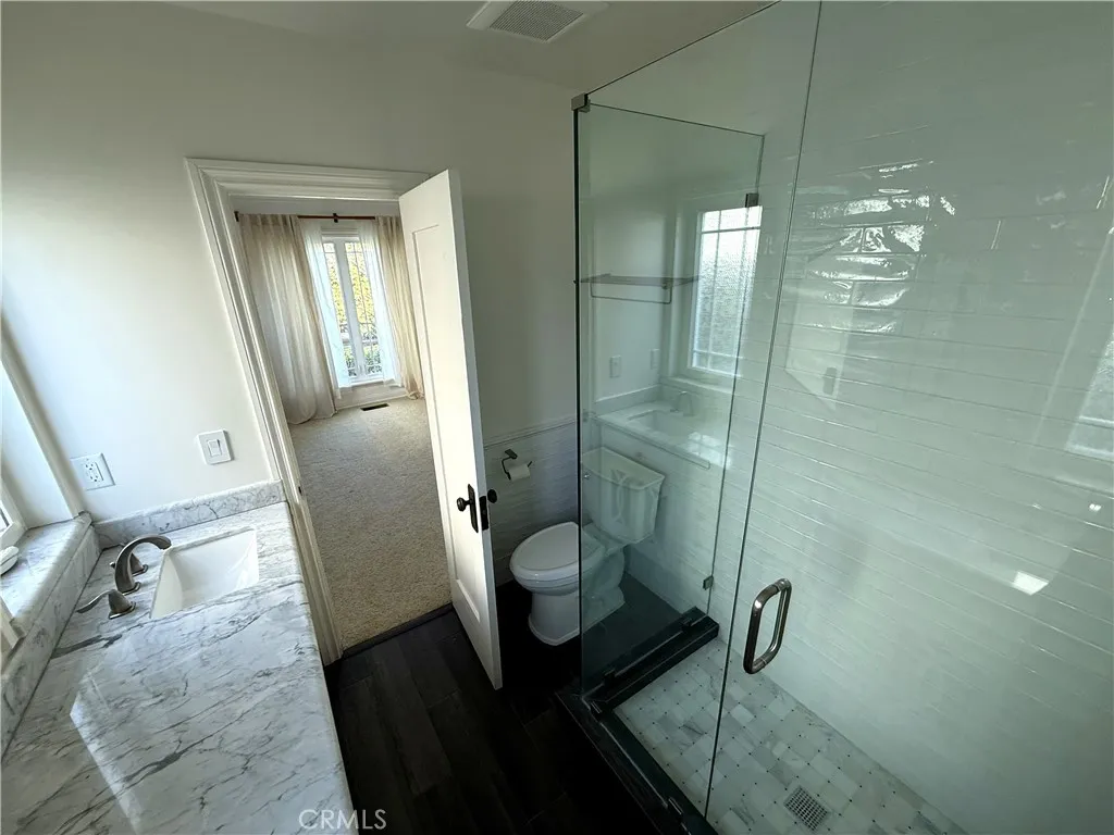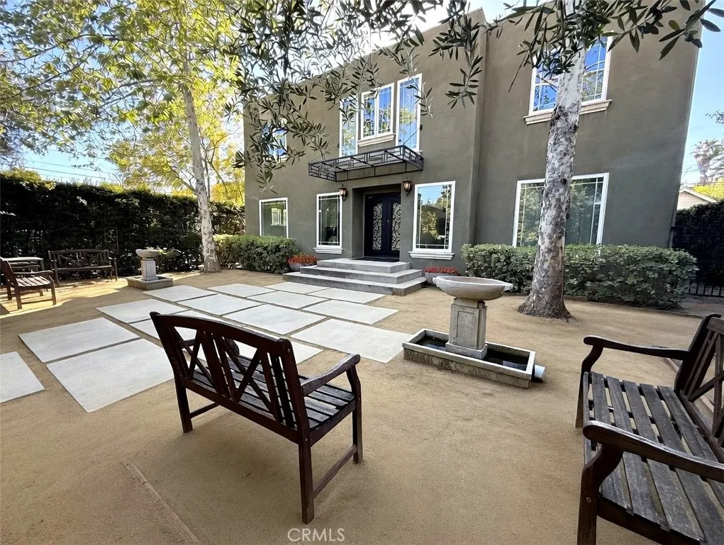 Tucked behind towering hedges on a coveted Los Feliz street, this gated 1923 estate delivers the kind of drama, scale, and character that simply cannot be replicated. Step through the iron gate and stone courtyard into a breathtaking double-height great room soaring ceilings, a sweeping staircase, a crystal chandelier, and rich dark hardwood floors set the stage for a home that feels equal parts grand and intimately yours. Graceful arched doorways, ornate crown molding, and an open-concept layout create effortless flow between the living and entertaining spaces. The chef's kitchen features classic white cabinetry, stone countertops, and ample storage all opening seamlessly to the main living areas. Upstairs, a dramatic mezzanine lounge wraps around the chandelier with a gallery wall and plush curved seating the perfect perch for morning coffee or evening cocktails overlooking the great room below. Spacious bedrooms include a serene primary suite, while four beautifully appointed bathrooms showcase Carrara marble floors, frameless glass-enclosed showers, designer tile work, and an elegant clawfoot soaking tub. Every detail has been carefully considered. The showstopper? A private home theater with tiered stadium seating, a ceiling-mounted projector, and cinematic dcor your own screening room worthy of the neighborhood's storied Hollywood legacy. Step outside to a sun-drenched solarium balcony and a private, tree-shaded backyard an entertainer's canvas ready for al fresco dining, lounge seating, or weekend gatherings. A private detached structure in the tree-shaded backyard a