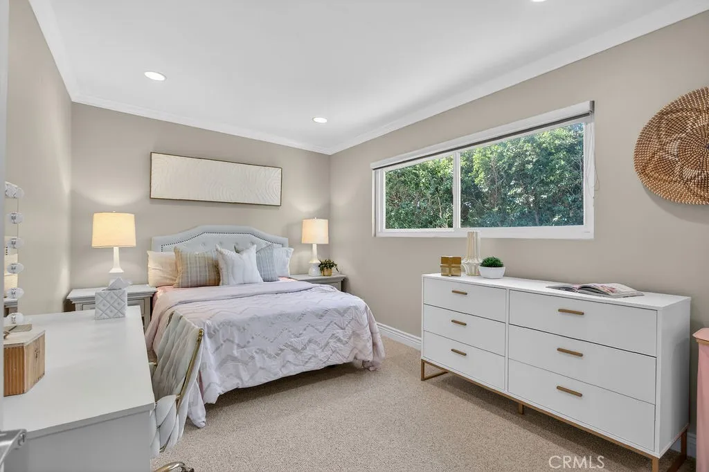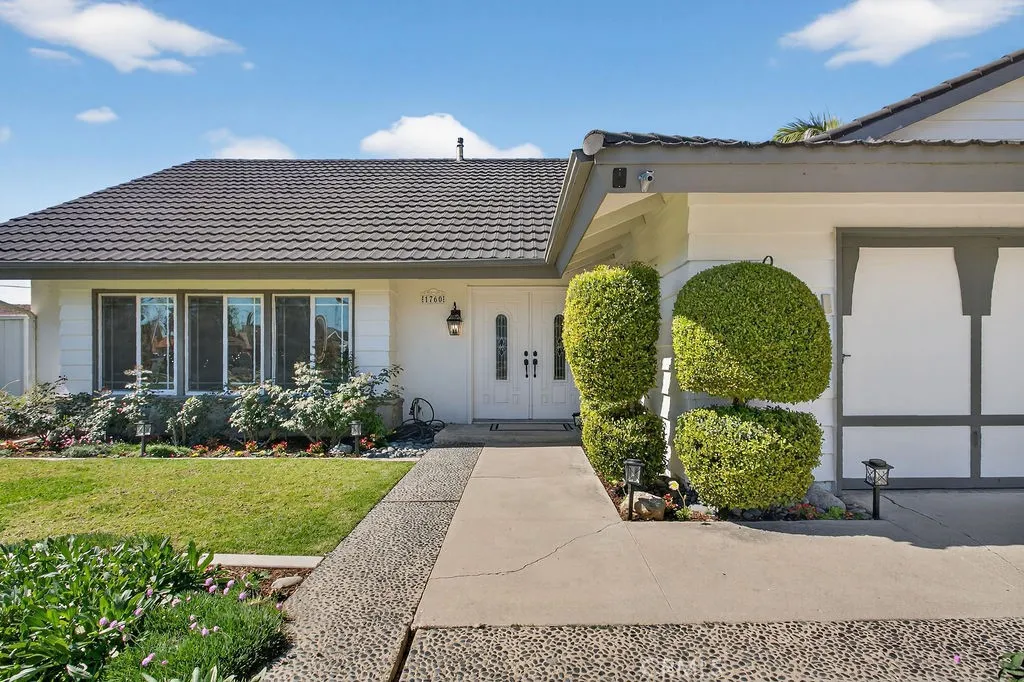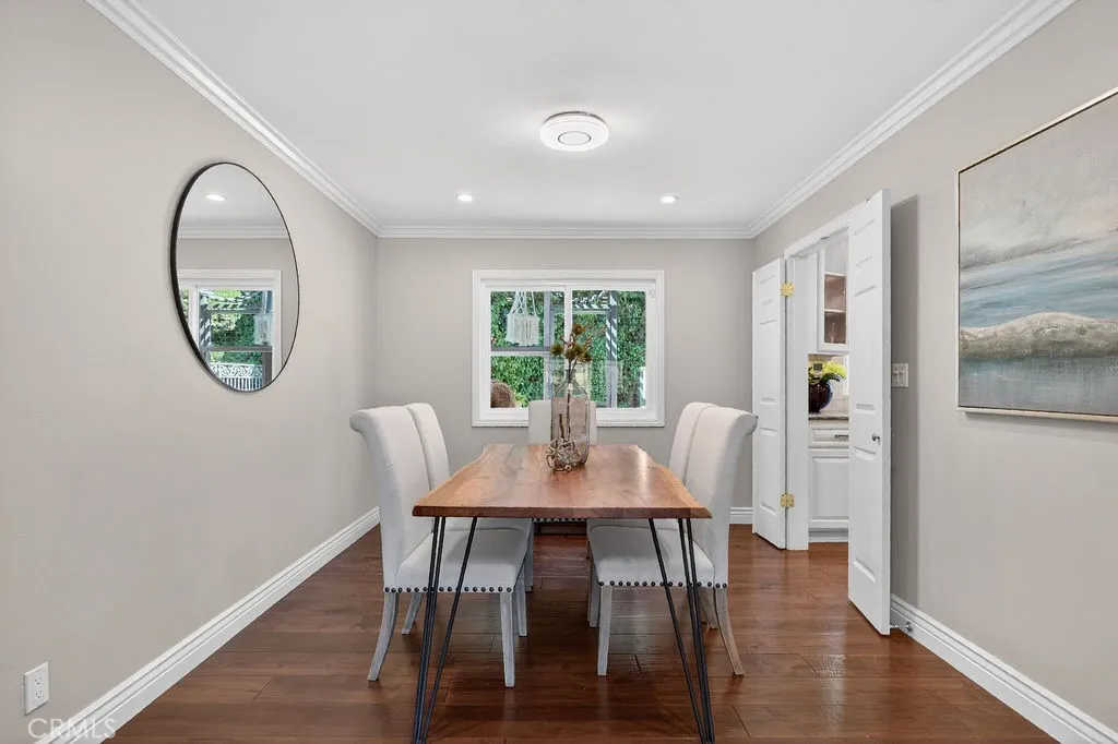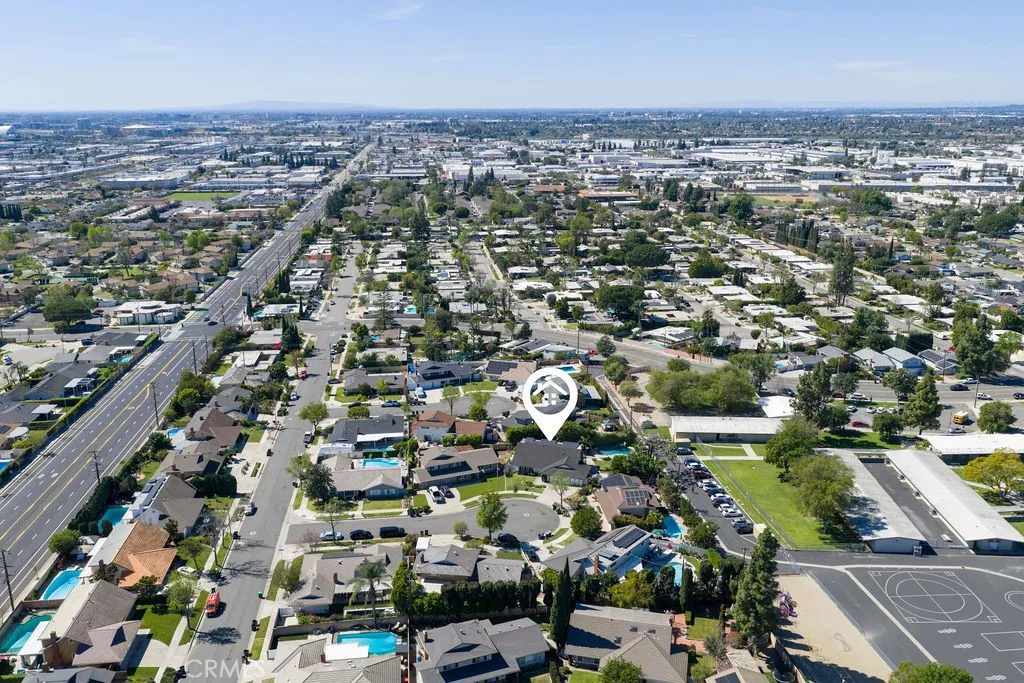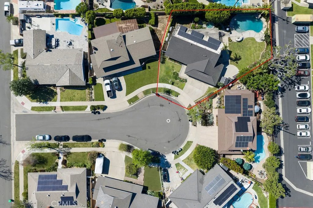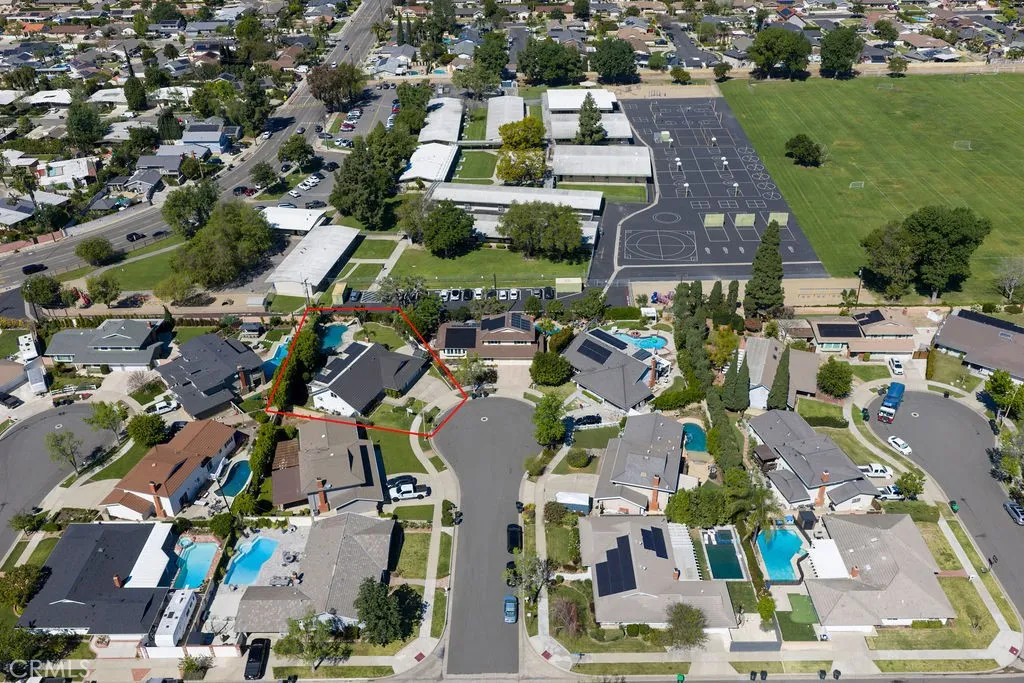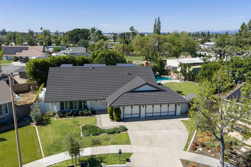 Welcome to your own private resort where a sparkling pool, thoughtful modern updates, and classic California charm come together on a peaceful cul-de-sac street. This expertly appointed City of Orange gem offers approximately 2,600 square feet, 4 bedrooms, 3 bathrooms, and sits on a generous 9,000+ square foot lot. Curb appeal impresses with clean mid-century lines, elegant landscaping, a wide driveway, and a 3-car garage. Step through glass-inlaid double front doors into a soaring entry featuring travertine floors, new carpet, and finely crafted wrought-iron details. Natural light floods the living room, anchored by a stone fireplace framed with custom-built-ins and elegant crown molding. The adjacent dining room boasts rich hardwood floors and comfortably seats eight. The kitchen is a culinary dream with glass-inlaid upper cabinets, high-end stainless-steel appliances, a large center island with bar seating, built-in range, walk-in pantry, and a bright breakfast nook overlooking the backyard oasis. The family room creates perfect indoor-outdoor living with a stacked-stone fireplace, rich cabinetry, and oversized sliders that open wide to the resort inspired yard. Downstairs youll also find a practical laundry room with ample storage and a convenient pool bath with direct backyard access. Upstairs, the primary suite offers a true retreat with custom finishes, granite counters, and a luxurious walk-in shower. The three secondary bedrooms are generously sized with on-trend colors, recessed lighting, and thoughtful built-in desks and shelving. The backyard is the true crown j