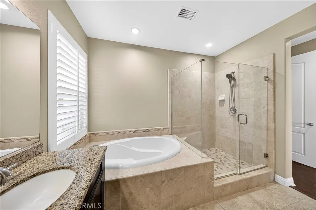 Welcome to this beautiful 3-bedroom + loft, 2.5-bathroom home in the highly desirable Blackstone Community. As you enter through the gated entry, youll notice the peaceful setting and lovely city views. On clear evenings, you can even enjoy distant views of the Disneyland fireworks. Inside, the home is bright and inviting with porcelain tile and hardwood floors and recessed lighting throughout. The living room features a cozy fireplace, built-in ceiling speakers, and large windows with scenic city views. It opens to the formal dining area and spacious kitchen. The kitchen offers granite countertops and backsplash, a center island, stainless steel appliances, and custom shelving. Upstairs includes a separate laundry room, a versatile loft, and spacious bedrooms with large closets. Bathrooms feature dual sinks with granite countertops. The primary suite offers hardwood floors, two walk-in closets, and beautiful city views. The primary bathroom includes a walk-in shower with frameless glass door, a soaking tub, and granite countertops. The backyard features brick and stone walkways and multiple sliding glass doors, creating a great indoor-outdoor space for relaxing or entertaining while enjoying the city lights and distant Disneyland fireworks. Conveniently located near freeways, shopping, dining, and top-rated schools. A must-see home!