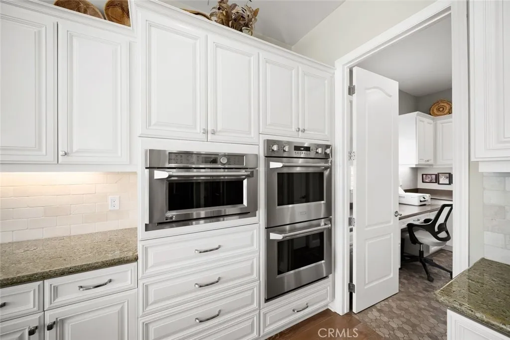 This highly desirable Carmel model is located on one of Trilogys most prestigious streets, offering stunning south-facing golf course views and a full private casita with its own entrance. Inside, its immediately clear that no expense was spared. Premium designer upgrades throughout create a sophisticated aesthetic, beginning with a stunning mosaic entry floor that transitions seamlessly into rich wood flooring throughout the main living areas. The open-concept layout features a spacious great room, elegant dining area, and an expansive chefs kitchen designed for both everyday living and entertaining. Just off the entry, a refined library showcases custom built-ins and a dramatic dual-sided fireplace shared with the great room.The gourmet kitchen is anchored by an oversized granite island and equipped with stainless appliances including double wall ovens, a gas cooktop, built-in refrigerator, raised-panel cabinetry, stone backsplash, pendant lighting, wine refrigerator, and a walk-in pantry with custom pull-out shelving. Adjacent to the kitchen is the SmartSpace, featuring a laundry area and built-in desk designed to simplify daily tasks.The great room and dining area open to spectacular fairway views and an outdoor living space ideal for entertaining. The backyard is a private oasis with lush gardens, winding crushed granite and flagstone pathways, a massive custom stone fire pit, and a built-in barbecue. Host effortlesslybegin with cocktails around the kitchen island, enjoy dinner in the dining room, then gather under the covered patio with Infratech heaters and retractab