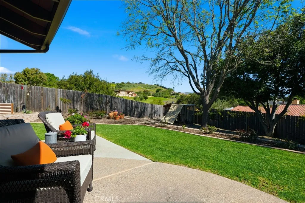 In the hills behind the streets of Solvang is a captivating treasure. Framed by its manicured landscaping, a vaulted ceiling and open floor-plan invite you in and entice you to sit and relax. Enjoy dinner in the spacious kitchen, with two Viking ovens, Thermadore cooktop and built-in GE Monogram refrigerator. When it's time for bed, sleep tight in the generous primary suite with seating area, patio access, walk-in closet and remodeled bath. Two additional rooms are located down the hall and have access to the recently remodeled second bath. Soak up the summer sun while relaxing on one of two back patios or take advantage of our summer nights and enjoy dinner al fresco.Located just a short drive from downtown Solvang, you are never far from grocery stores, restaurants or medical facilities.