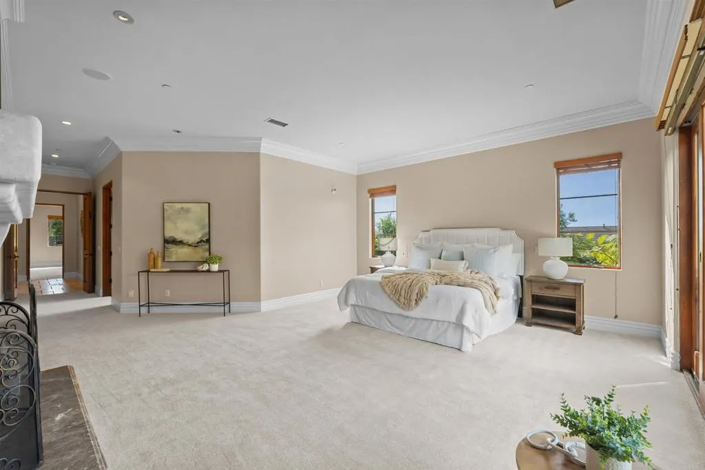 Welcome to an extraordinary private estate nestled in the picturesque foothills of Vista. Featuring a circular driveway set behind a motorized gated entry, the home exudes luxury from the moment you enter. Fully fenced on nearly one acre of lush grounds, this magnificent residence offers 6,247 square feet of refined living space including five bedrooms and six bathrooms. Grand 9-foot mahogany double doors open to a dramatic interior with immediate views of the resort-style backyard. The heart of the home is the gourmet chefs kitchen, beautifully appointed with custom cabinetry, granite countertops, a 6-burner gas cooktop, brand new dishwasher, breakfast bar, expansive center island, and a large walk-in pantry. The thoughtfully designed floor plan lives like a single story with the primary bedroom on the first floor. Also located on the first floor are two dedicated offices, each with direct access from the exterior or interior, a formal dining room, a guest bedroom with ensuite bath, an oversized laundry room with an abundance of storage and counter space, and a convenient half bath for guests. The downstairs primary suite features its own fireplace, slider out to the backyard, and a sensational ensuite bathroom complete with soaking tub, separate walk-in shower, and oversized walk-in closet with custom shelving and 10-drawer dressing station. Upstairs you will find a loft with a built-in entertainment center and three generously sized guest bedrooms, all with en-suite bathrooms and walk-in closets. Additional highlights include soaring coffered ceilings, a stunning wrought