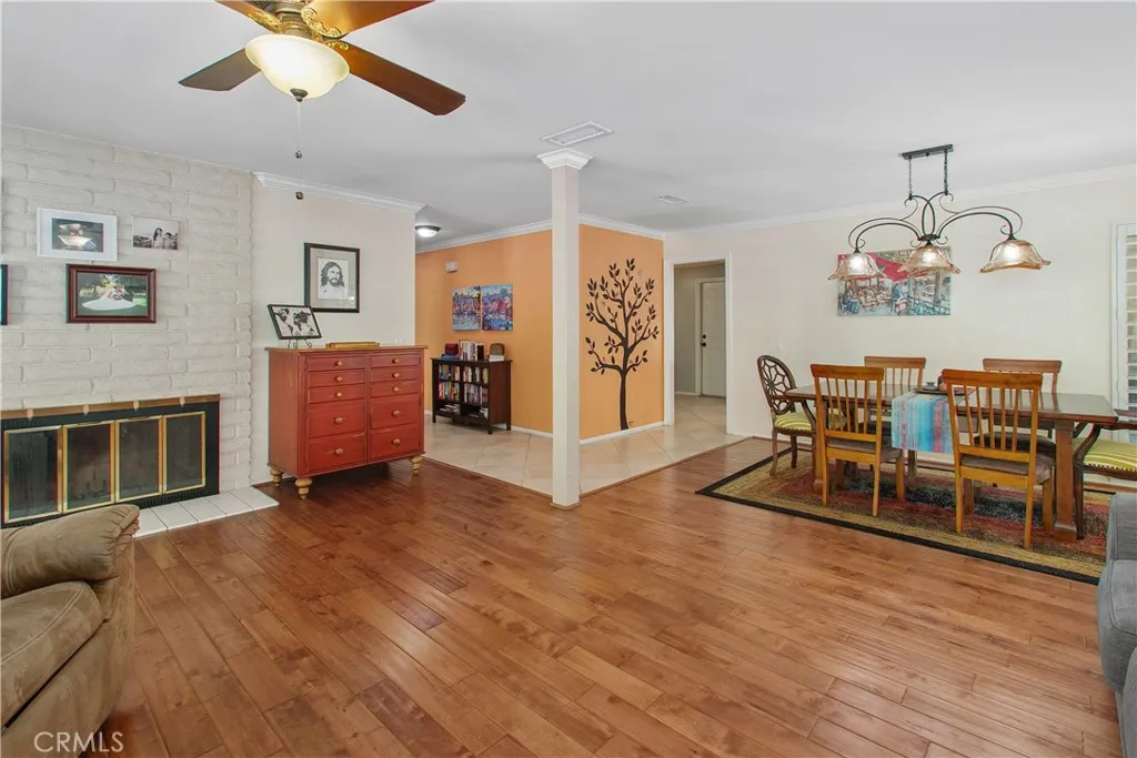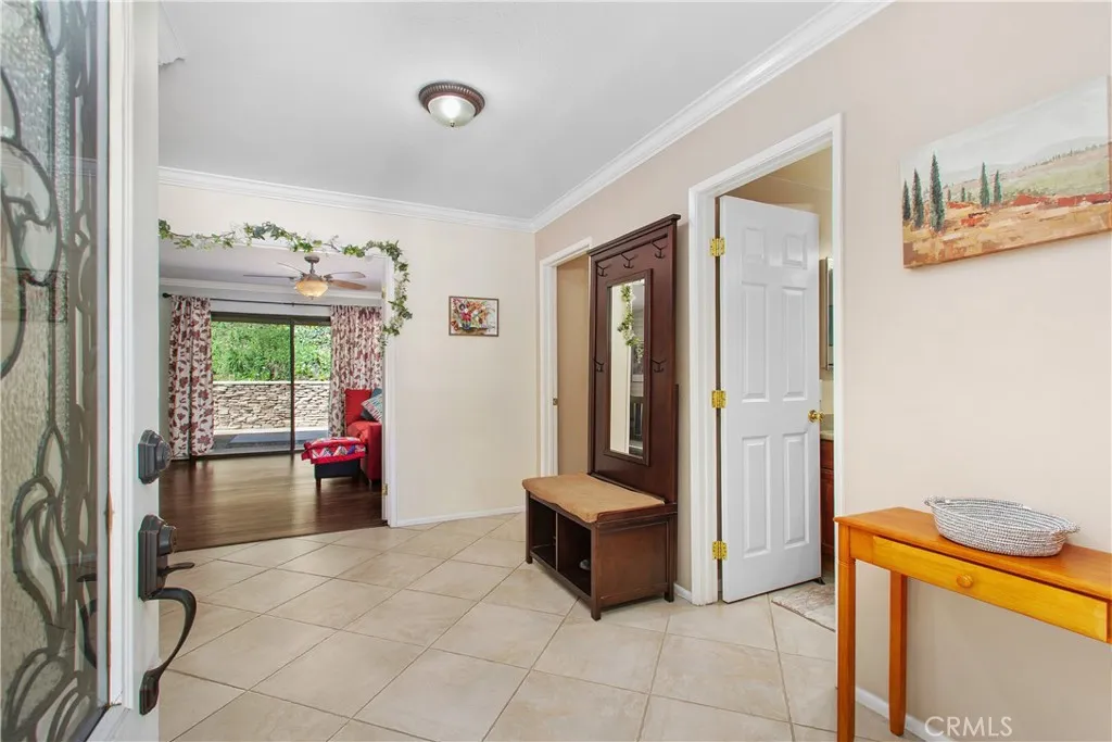 Welcome to 1451 Trenton Dr, perfectly situated in Riversides desirable Canyon Crest neighborhood. Upon arrival, you'll be greeted by views from the front patioan ideal spot to savor your morning coffee while watching the sun rise over the Box Springs Mountains and the UCR campus. As you step into the front courtyard, its immediately clear that this meticulously maintained residence is truly turnkey. Enter inside to discover an open, airy layout with multiple access points to both the back and side patios, seamlessly connecting indoor and outdoor living. The living and dining rooms combine to create a welcoming space for entertaining with crown molding and laminate flooring. The fully remodeled kitchen features elegant marble countertops, high-end LG appliances, and a charming coffee bar nookperfect for both everyday living and hosting guests. Luxury vinyl and tile flooring flows throughout the home, providing a cohesive, sophisticated look that suits any decor style. The double-sided fireplace serves both the living room and the cozy family room, enhancing both comfort and style. Down the hallway, youll find 4 spacious bedrooms, filled with natural light and ample closet space. The updated hall bath has modern vanities and sleek tile accents. The primary suite boasts crown molding, vinyl flooring, and a slider that opens to the back patio, offering backyard views and abundant natural light. The remodeled primary bathroom includes a marble vanity sink, a large shower enclosure, and a spacious closet to complete the suite. Step outside to your private backyard retreat. The ex