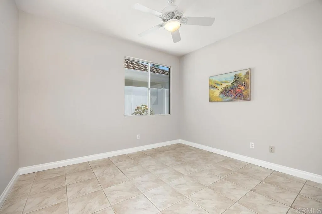 Welcome to your dream home in the heart of the highly sought-after 55+ community of Ocean Hills Country Club. This freshly painted, single-story residence features the rare and highly desirable Milos floor plan, offering two bedrooms, two bathrooms, and a spacious office with a Murphy bedperfect for guests or a flexible workspace. Step inside to discover tall ceilings and an abundance of natural light, creating an open and airy ambiance throughout the home. The inviting living room is centered around a cozy fireplace, providing the perfect setting to relax on cooler evenings. The kitchen offers a charming breakfast nook, white cabinetry, granite countertops, and a convenient center island, making it ideal for everyday living and casual dining. Pull-out shelving in almost all cabinets. The primary suite features soaring ceilings that enhance the sense of space and tranquility. This peaceful retreat includes a walk-in closet, dual sinks, and a walk-in shower. A convenient slider opens to a charming private courtyard, creating a serene outdoor escape just steps from the bedroom. An additional bedroom and full bathroom provide comfortable accommodations for guests or the perfect space for a hobby or craft room. Additional highlights include high-end laminate and ceramic tile flooring, updated baseboards throughout the home, ceiling fans in the living room, office, and kitchen, and plantation shutters in the living room and primary suite. Wonderful, electric retractable shade for the outdoor patio offers a comfy shaded area for those warmer, summer days. Residents of Ocean Hills