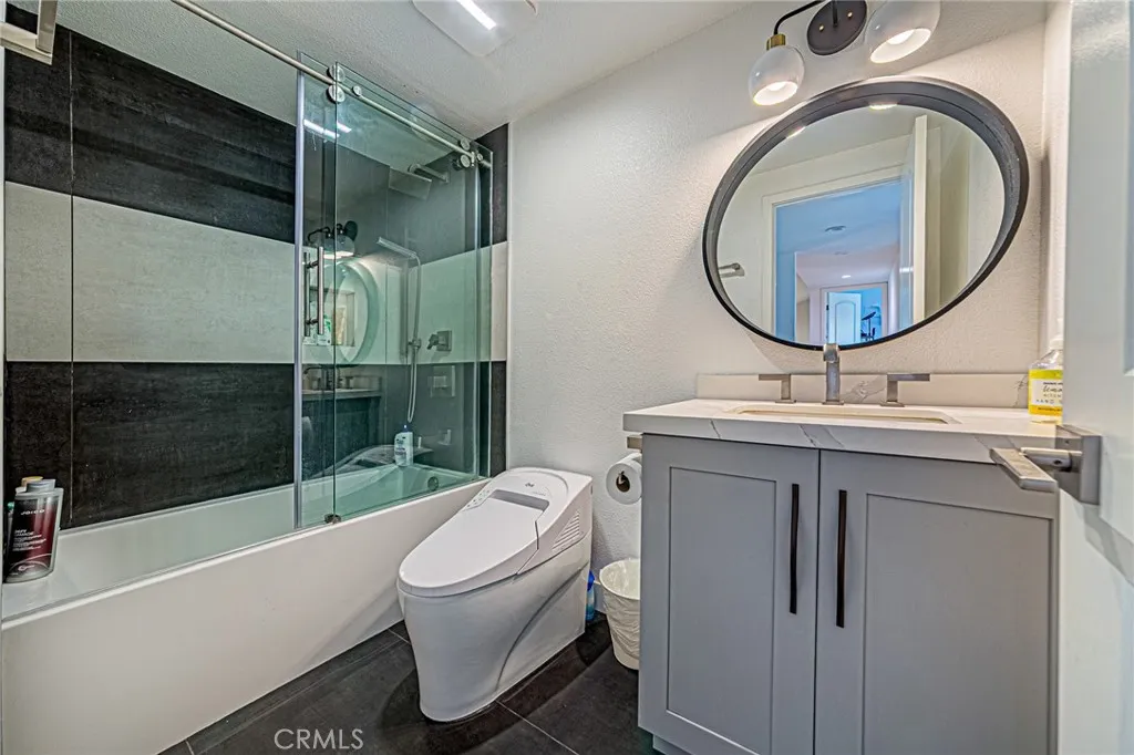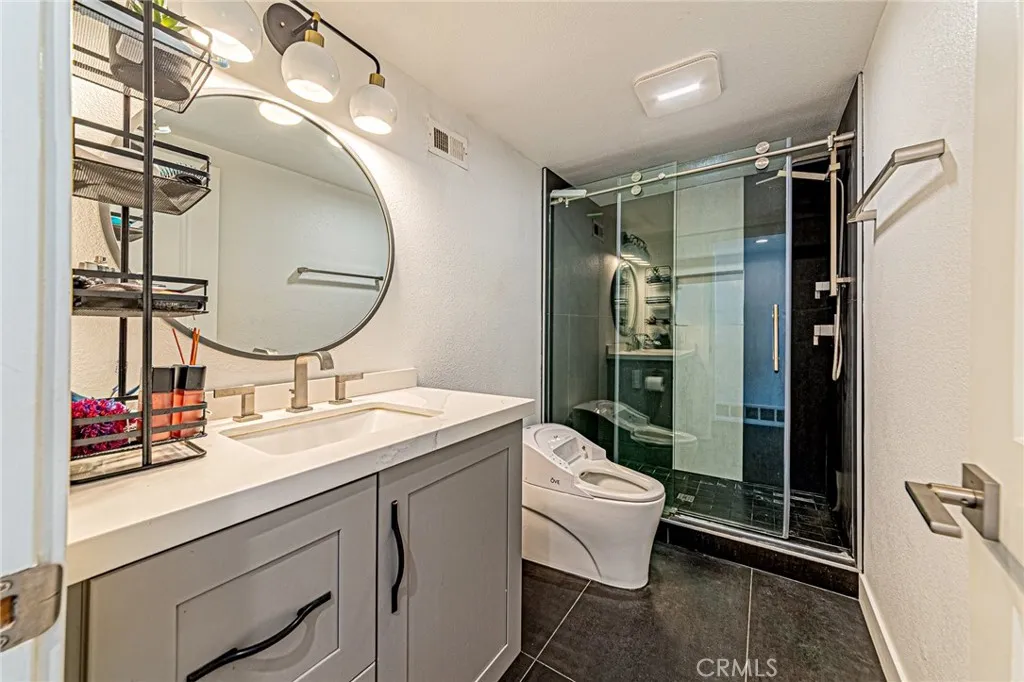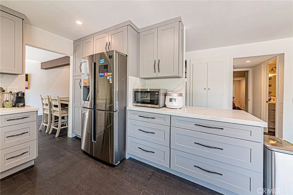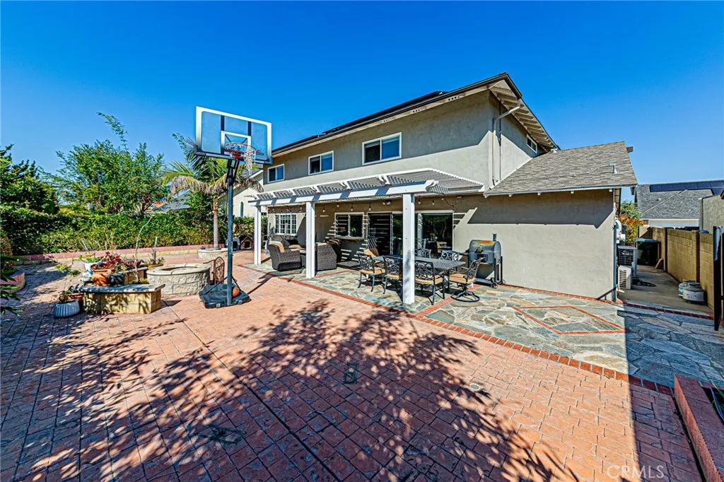 Welcome to this stunningly remodeled split-level masterpiece in the highly sought-after Greenbrook community of Cypress. From the moment you step through the elegant double-door entry, you are greeted by an open and airy architectural design featuring soaring vaulted ceilings and dramatic dark wood beams. This home underwent extensive renovations in 2019 all performed with full city permits featuring a complete chefs dream kitchen remodel with sleek quartz countertops, contemporary grey shaker cabinetry, professional-grade stainless steel appliances, and premium oversized ceramic tile flooring throughout the lower level. The propertys infrastructure was also significantly upgraded in 2018, including professional asbestos removal and the replacement of old galvanized piping with modern flex piping for ultimate peace of mind. The seamless flow leads to a sun-filled living area highlighted by stylish wrought iron railings and designer lighting. A portion of the garage has been thoughtfully and legally converted into a functional, fully-permitted bonus room ideal for a home office or gym. Added interior comfort includes a high-quality whole house water filtration/softener system. Retreat to the private backyard oasis with an Alumawood patio cover and custom fire pit. Location is everything within walking distance to the prestigious, nation-ranking Oxford Academy. This home is equipped with solar panels for energy efficiency (Solar lease to be assumed by buyer). Additional highlights include updated recessed lighting and modern dual-pane windows. With every upgrade meticulously