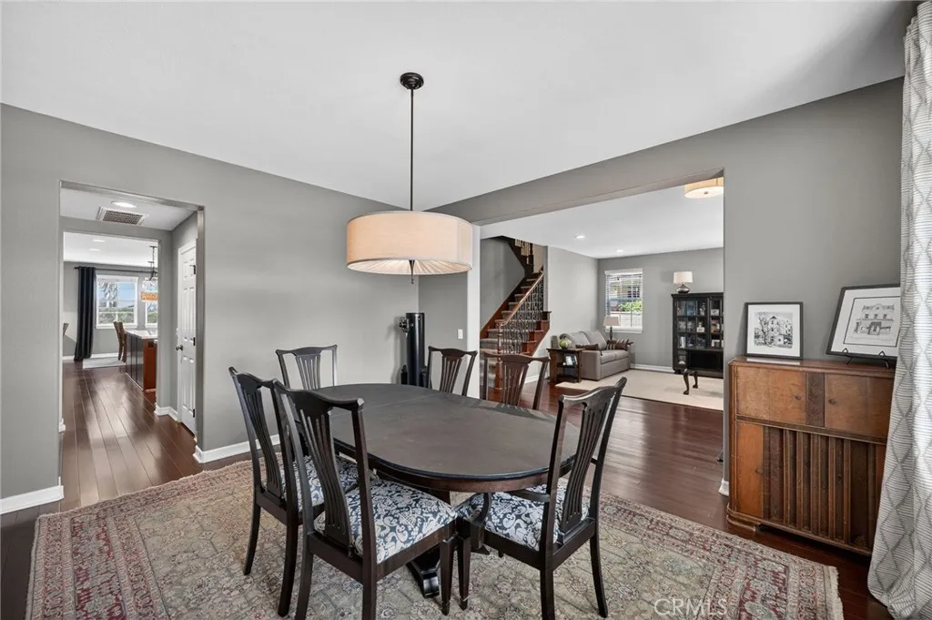 Welcome to an exceptional residence in the highly sought-after Redwood Collection of Wolf Creek, tucked away on a quiet cul-de-sac in South Temecula. Offering over 4,000 square feet of well-designed, thoughtfully updated living space, this 5-bedroom, 4.5-bathroom home, complete with a private office, blends timeless elegance with everyday comfort. A beautifully landscaped front yard welcomes you inside to formal living and dining spaces designed for both intimate gatherings and elevated entertaining. Rich bamboo flooring leads you into the heart of the home, where the family room invites you to relax by the fireplace while staying seamlessly connected to the kitchen. The chefs kitchen is both stylish and functional, featuring quartzite countertops, stainless steel appliances, oversized island, and a 6-burner gas cooktop. A built-in study area in the breakfast nook adds convenience for work or creative projects, while the butlers pantry offers a seamless connection to the formal dining room. The main level also includes a private bedroom with an updated ensuite bath and direct backyard access, ideal for guests, a home office, or flexible living. A powder room with limestone countertops adds a refined touch. Upstairs, the primary suite offers a true retreat with dual walk-in closets and a beautifully upgraded bath featuring separate vanities, a soaking tub, and a spa-inspired walk-in shower with multiple shower features designed for a relaxing, resort-like experience. A spacious office provides additional living space, while three secondary bedrooms and two updated secondary