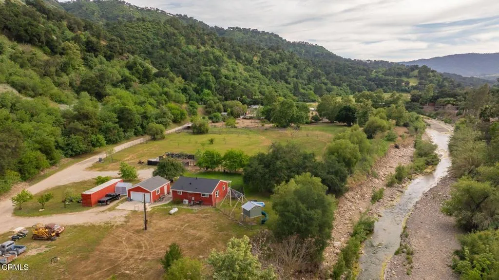 Fraser Ranch is a rare and versatile offering spanning two parcels, delivering complete privacy and an exceptional opportunity to embrace a true homestead and farm lifestyle, as well as the opportunity for a multi-family compound and or income property. Tucked away in a serene setting, this property offer space, functionality, and the freedom to live sustainably while enjoying the beauty of country living. Located just minutes from downtown Ojai and only moments away from the beach, this ideal location allows you to truly live out in the country with out actually being too far away from necessary amenities.The first parcel encompasses 9.5 acres of mostly flat, usable land and features two residences. The primary home offers 2 bedrooms, 1 bathroom, approximately 940 square feet, a new roof, attached garage, spacious fenced yard, and a built-in play structure. The second home is a charming two-story residence with 2 bedrooms, 1 bathroom, approximately 1,000 square feet, its own septic system, and sweeping scenic views.The second parcel consists of 2 acres and is home to a beautifully designed 2,124 square foot residence featuring 3 bedrooms, 2 bathrooms, a spacious primary suite, and a welcoming brick paver front porch perfect for a couple of rocking chairs. This parcel also includes a large red barn and a thoughtfully designed event space complete with string lighting and multiple seating areas--ideal for gatherings, weddings, or private events.Both parcels are serviced by city water, septic systems, and propane, with owned solar providing additional energy efficiency alongs