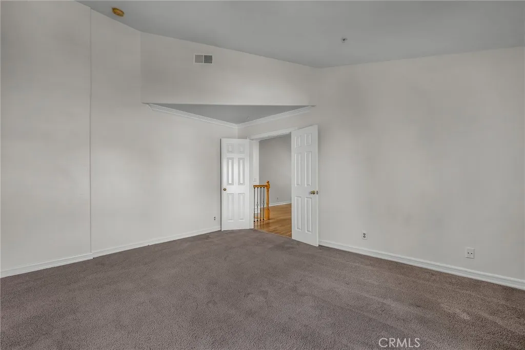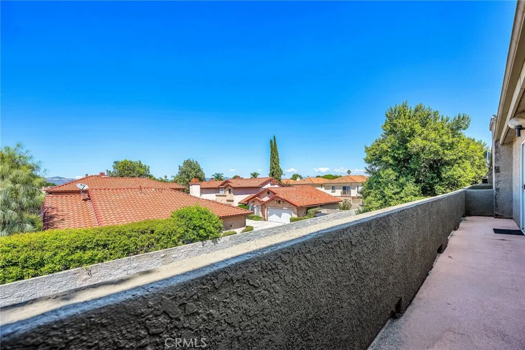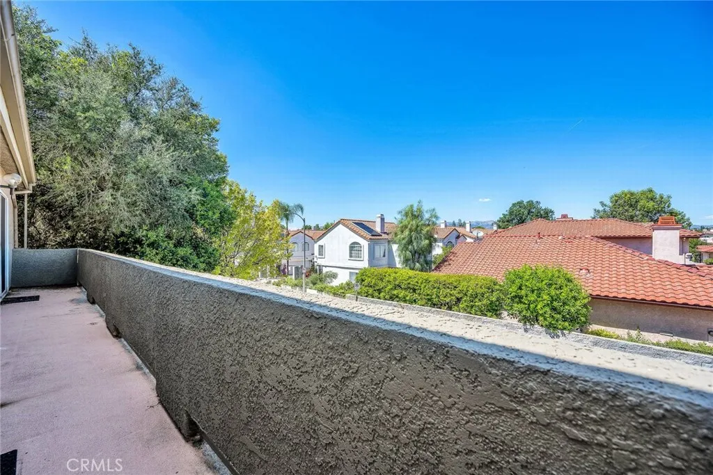 Stop the searchthis is the townhome youve been waiting for. Beautifully upgraded tri-level residence, quietly tucked at the back of the complex, blending comfort, style, and everyday convenience. Designed for modern living and effortless entertaining, this light-filled home features soaring ceilings, abundant natural light, and an open, airy layout throughout. The main level welcomes you with a spacious living room highlighted by high ceilings, crown molding, recessed lighting, wood-style flooring, and a cozy fireplace. A sliding glass door opens to a large private balconyperfect for morning coffee or evening relaxation. A convenient guest bathroom completes this level. The updated kitchen showcases warm Carmel-toned cabinetry, granite countertops, stone backsplash, stainless steel appliances, and decorative tile flooring, all opening seamlessly to a generous breakfast area ideal for casual dining. Upstairs, a decorative staircase leads to a versatile bonus areaperfect as a family room, home office, or media space. The expansive primary suite offers a peaceful retreat with a walk-in closet and an updated ensuite bathroom featuring a granite-top vanity and beautifully tiled step-in shower. The spacious secondary bedroom includes a mirrored closet and access to an updated hall bathroom with granite-top vanity and tub/shower combo. Both bedrooms enjoy direct access to a large, tranquil balcony, enhancing the indoor-outdoor flow. Additional highlights include a private two-car garage with washer and dryer, ample storage, and a well-maintained community featuring a pool, spa, an