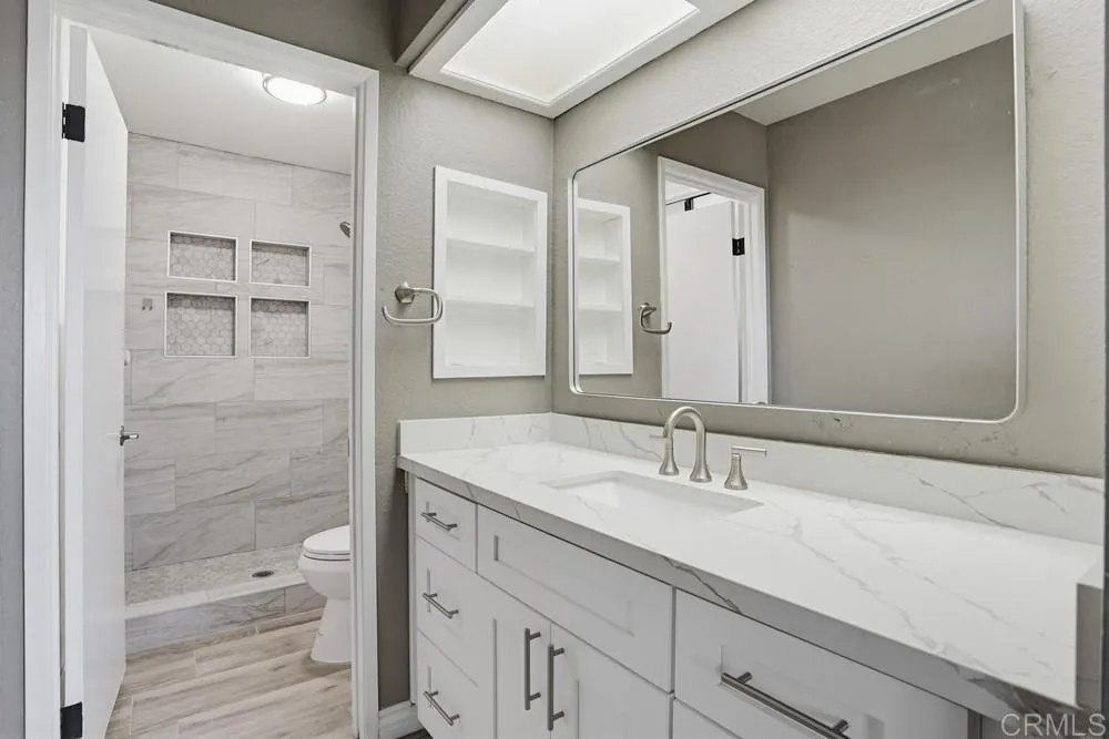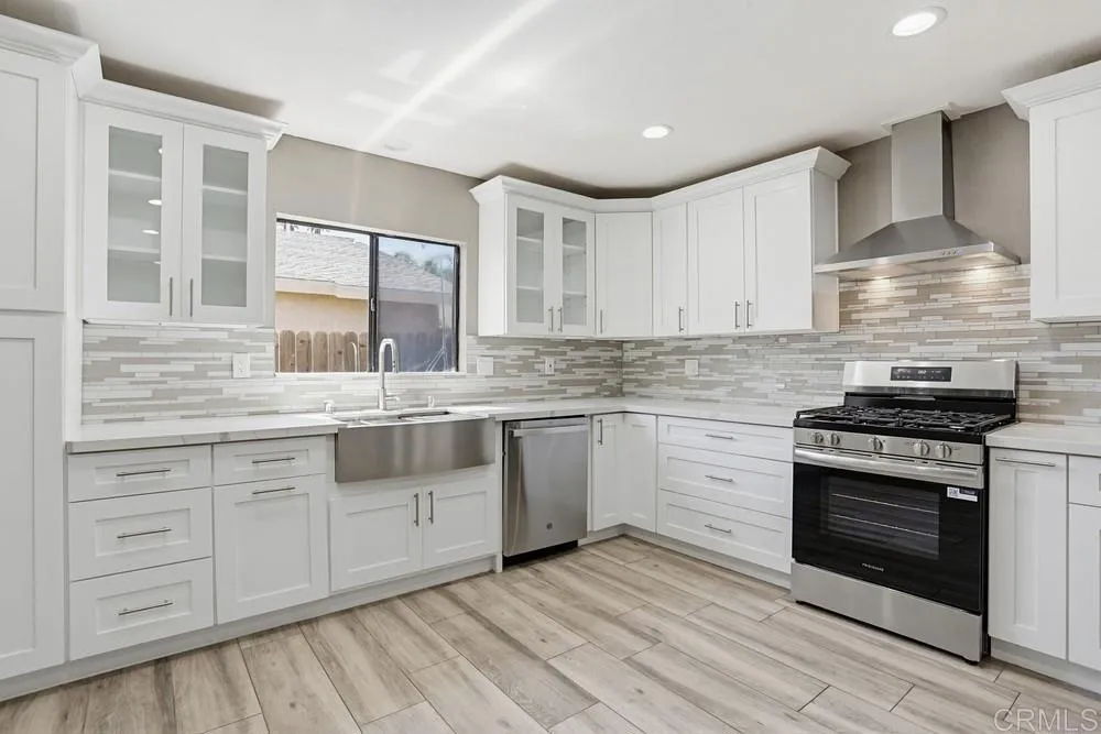 Remodeled single-family home in Escondido, California cul-de-sac location, no HOA, move-in ready condition throughout. This updated 3-bedroom, 2-bathroom home sits on a quiet cul-de-sac in Escondido with no HOA fees. The interior features updated flooring, fresh finishes, and an open-concept layout with strong natural light throughout the main living areas. The remodeled kitchen includes generous cabinetry, stainless steel appliances, and an open layout that connects directly to the living and dining areas a functional setup for everyday use and entertaining. Both bathrooms have been fully remodeled with quartz countertops, updated vanities, and custom tile work. The primary bedroom includes sliding glass doors with direct backyard access, offering a seamless indoor-outdoor connection. The backyard features a large covered patio with year-round usability, providing space for outdoor dining, entertaining, or relaxed everyday use. The lot offers flexibility that's difficult to find at this price point in Escondido. Conveniently located with easy access to shopping, dining, and major freeways including Highway 78 and I-15. Close to Escondido's downtown district, Westfield North County, and regional transit options. A remodeled, turnkey option in Escondido with no HOA ready for its next owner.