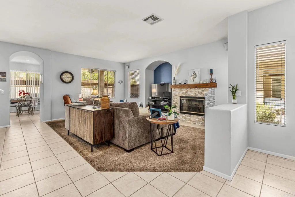 Excellent opportunity to own this fine starter home with spacious living room with vaulted ceilings, tile floors, ceiling fan and cozy fireplace, formal dining room with spacious kitchen with plenty o...